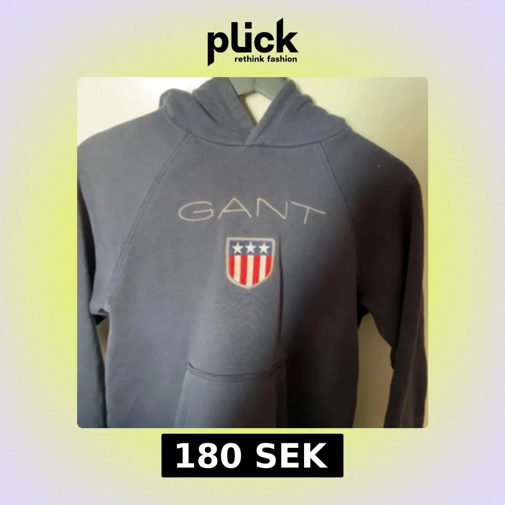 Säljer en mörkblå hoodie från GANT med broderad logga och amerikanskt sköldmärke på bröstet. Tröjan har huva och en stor magficka framtill. Perfekt för en avslappnad stil. Tröjan är i nyskick och jättefin verkligen, ser ny ut, använder inte den och det är dörför jag säljer den