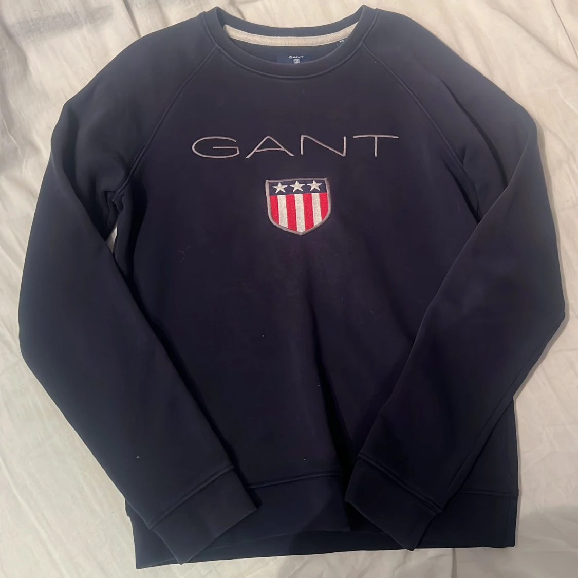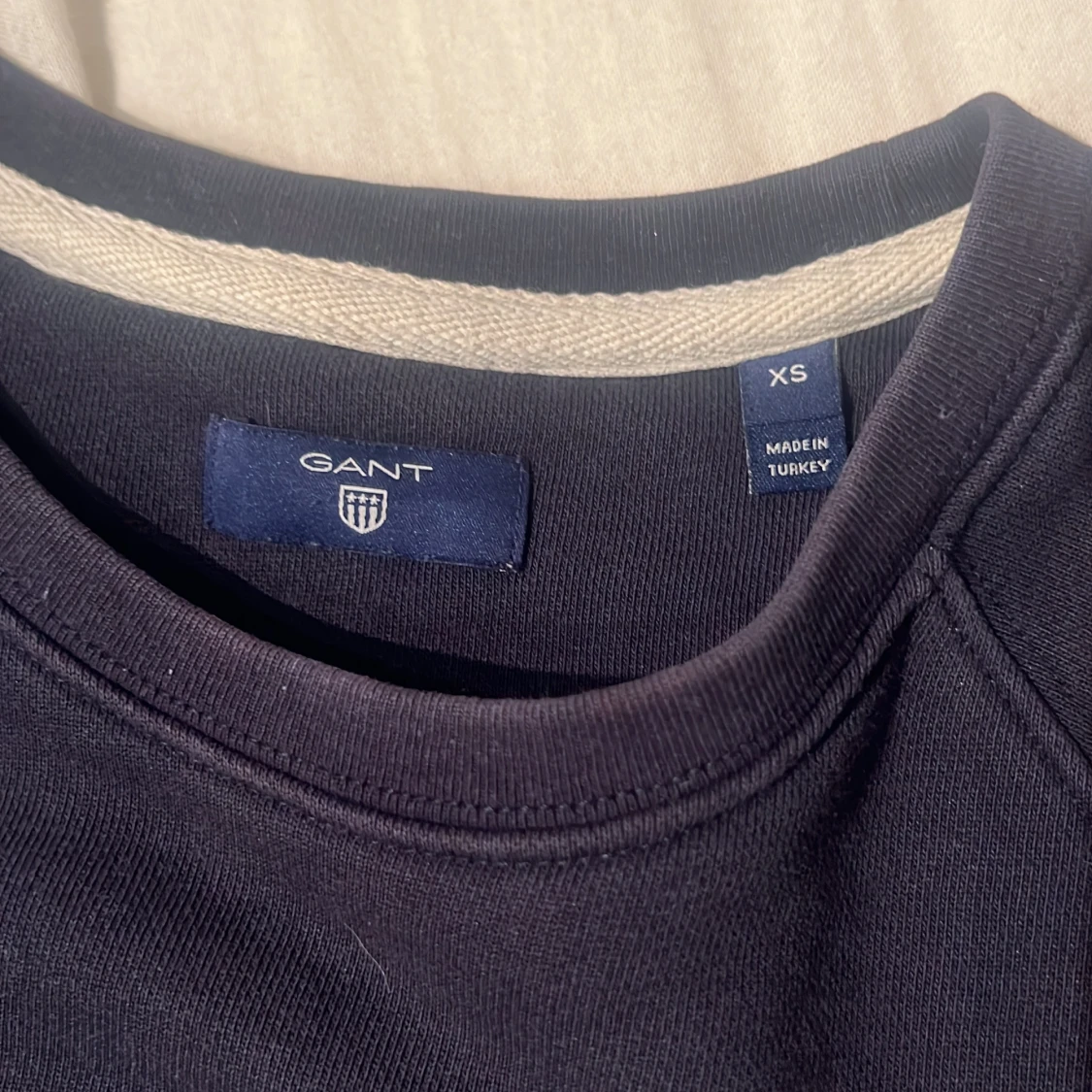 Säljer en snygg mörkblå tröja från GANT, favorit hoodien för några år sen då den blivit för liten. Tröjan har rätt så långa ärmar och rund halsringning. Perfekt för en stilren look. Den är liten så passar lite mindre personer. Storlek XS| minns inte nypriset då jag köpte den 2016 i gant butiken men skulle gissa på 1200kr. Sitter som en smeck!