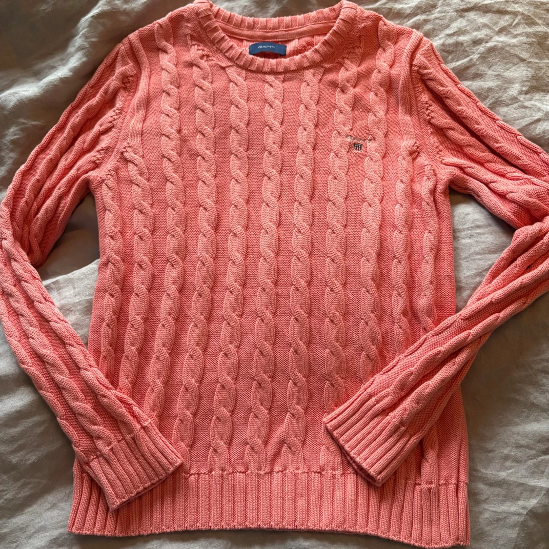 Säljer en kabelstickadtröja i färgen corall från GANT. Storlek 170 se bild. Perfekt för dig som gillar klassisk och stilren look.