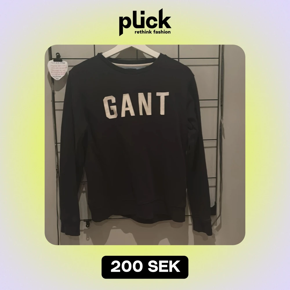 Säljer en snygg svart tröja från GANT med deras logga i vitt på bröstet. Tröjan har en klassisk rund hals och långa ärmar, perfekt för en stilren vardagslook. Den är i bra skick och passar perfekt till både jeans och chinos. Storleken är 158/165 men är som xs