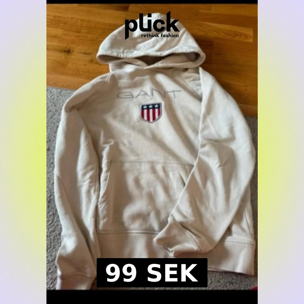 Snygg beige hoodie från GANT med broderad logga och emblem på bröstet. Tröjan har huva, magficka och långa ärmar. Perfekt för chill dagar och enkel att matcha med jeans eller joggers.