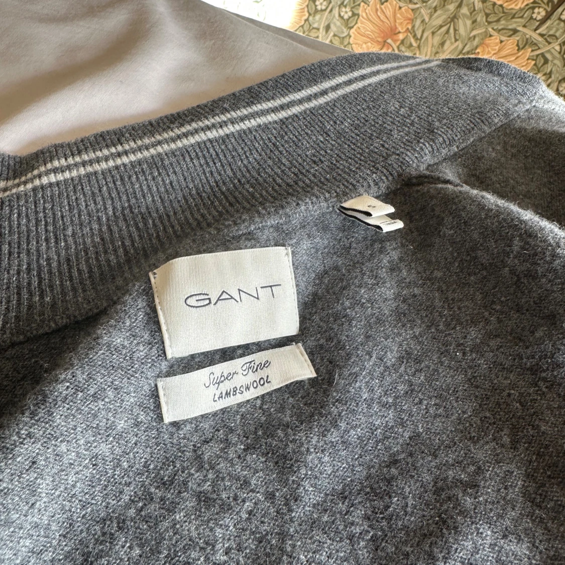 Säljer en stilren grå tröja från Gant i superfin lammull. Tröjan har en dragkedja framtill och en diskret logga på bröstet. Perfekt för kyliga dagar med sin mjuka och varma känsla. Använd fåtal gånger. Nyskick! Nypris:1700kr