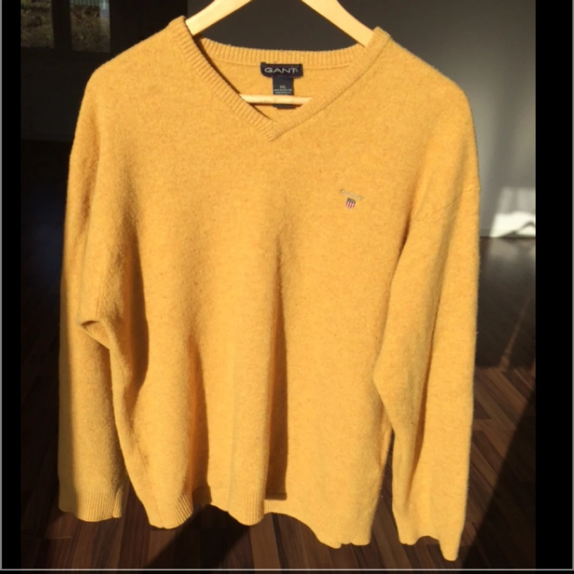 Gant tröja i ljus senapsgul ull. Står att det är storlek XXL men passar även fint på någon som har storlek M, det beror på hur man vill att tröjan ska sitta. Superfin färg!☘️