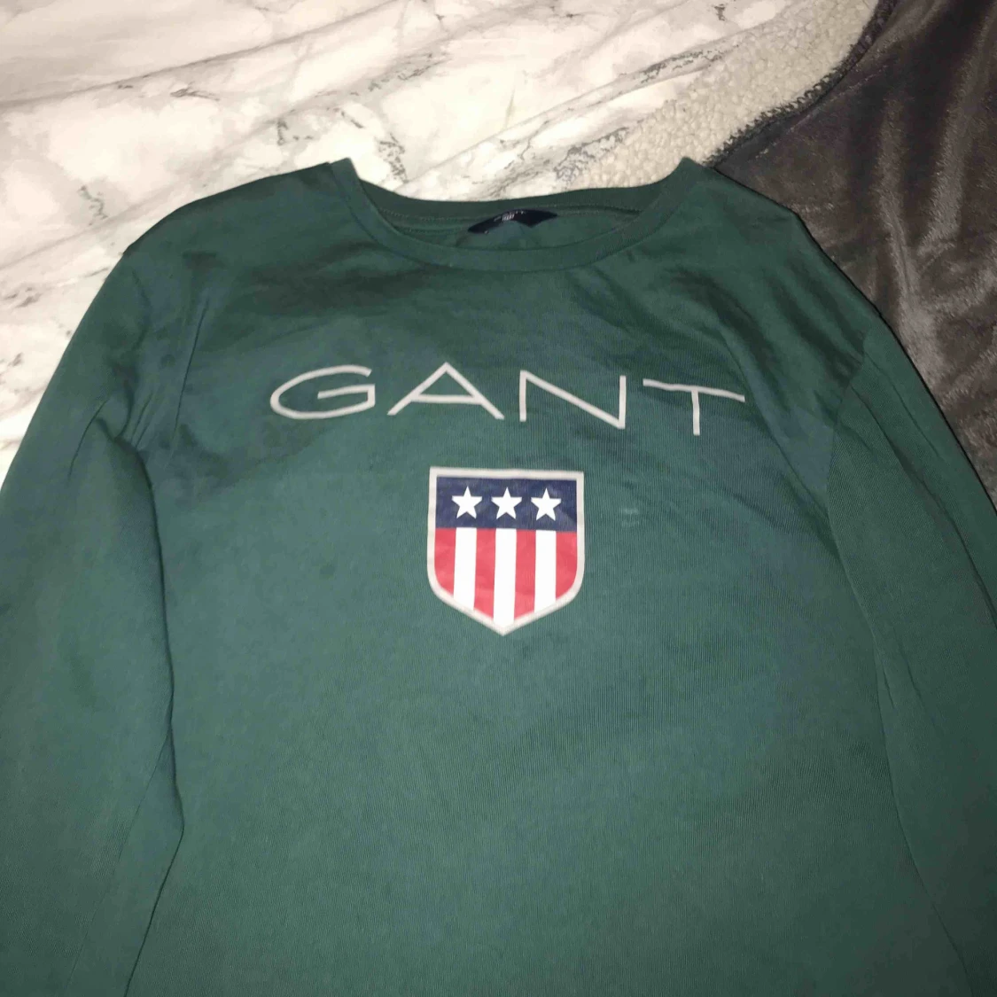 Fin gant tröja köpt för 299 kr❤️ används inte längre. Har ett litet litet hål men syns inte om man stoppar in tröjan tex🥰 annars bra skick!💗