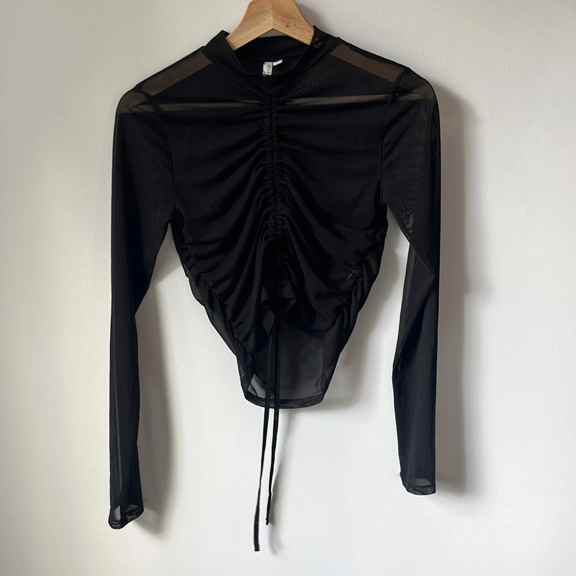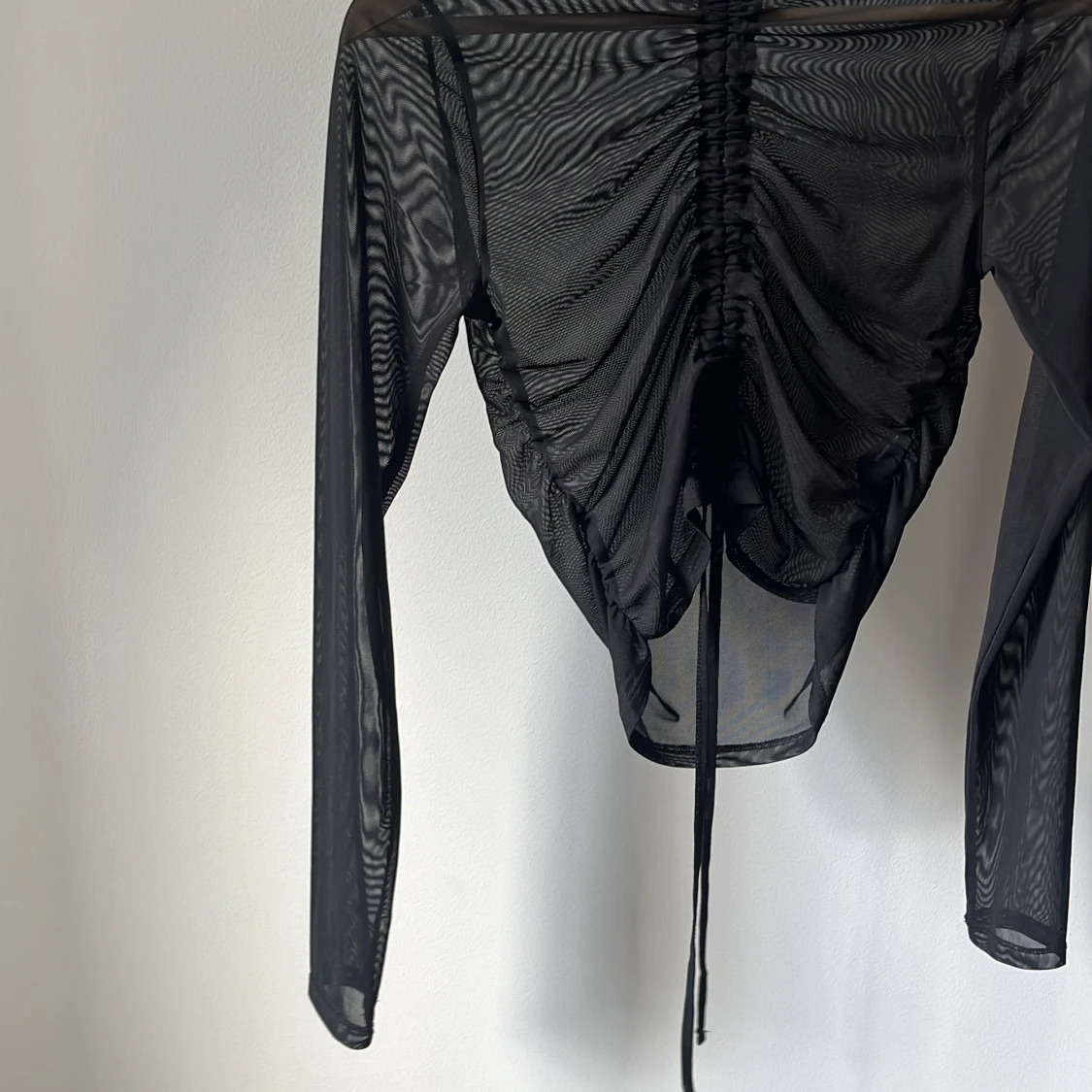 Tröja i mesh från Nelly Trend. Långärmad med dragsko fram. Högre hals. Supersnygg men för liten tyvärr 🖤