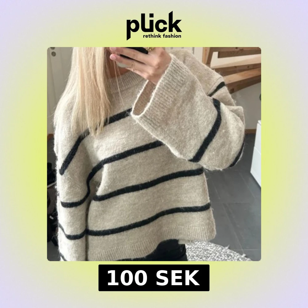 Stickad tröja i beige, med svarta ränder. Jätte bekväm! Köpt på Gina för 399kr. Lånad bild, skriv för fler bilder!
