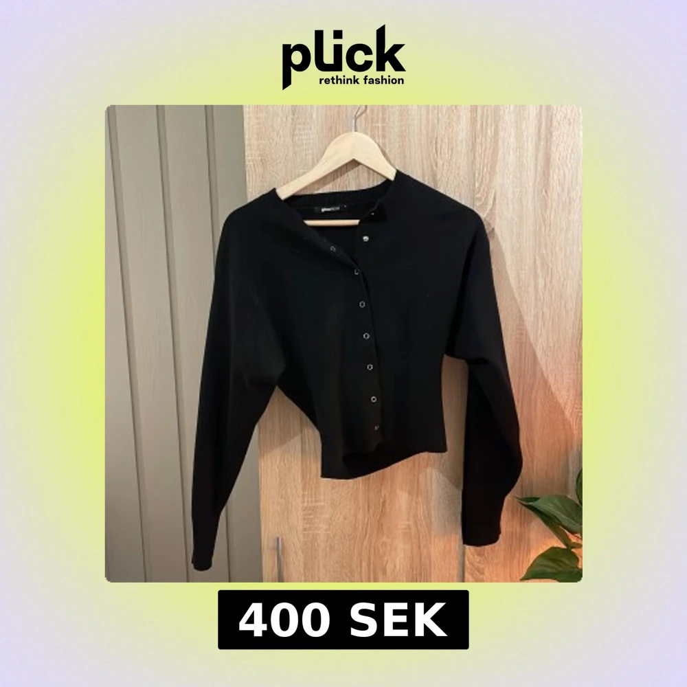Snygg svart kofta från Gina Tricot med knappar framtill. Perfekt för lager-på-lager och att hålla sig varm under kyligare dagar. Enkel och stilren design som passar till det mesta.