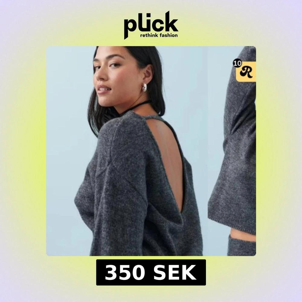Mörkgrå stickad tröja med öppen rygg