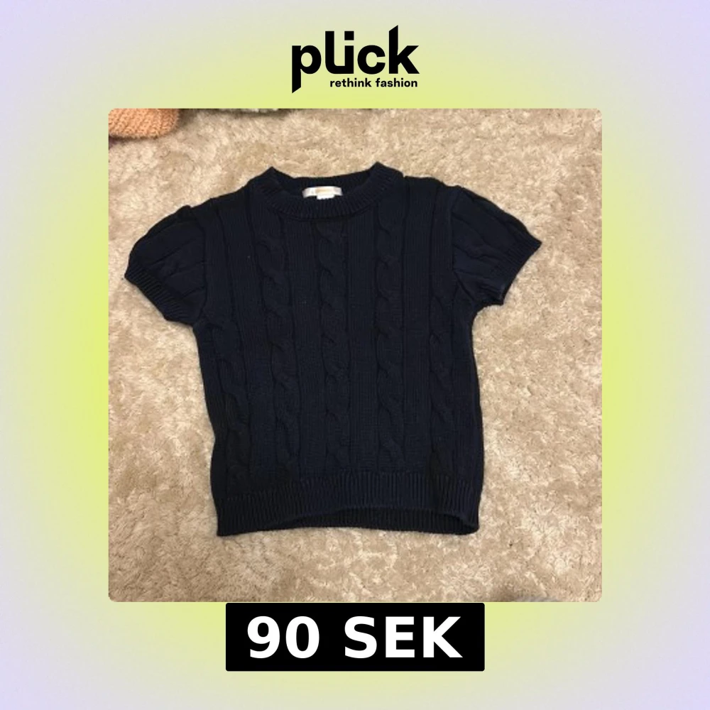 Supersöt mörkblå stickad tröja från Gina Tricot med korta puffärmar och klassiskt kabelstickat mönster. Tröjan har ribbade muddar vid ärmslut och nederkant, perfekt till jeans eller kjol för en chill men ändå snygg look.