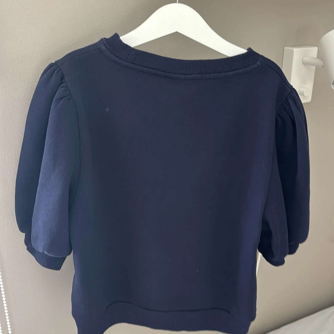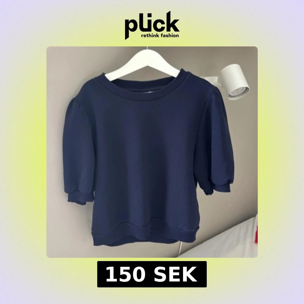 Säljer en mörkblå tröja från Gina Tricot med puffiga korta ärmar och ribbade muddar vid hals, ärmslut och nederkant. Enkel och stilren modell som passar till mycket. Perfekt för dig som gillar en klassisk look med en twist.
