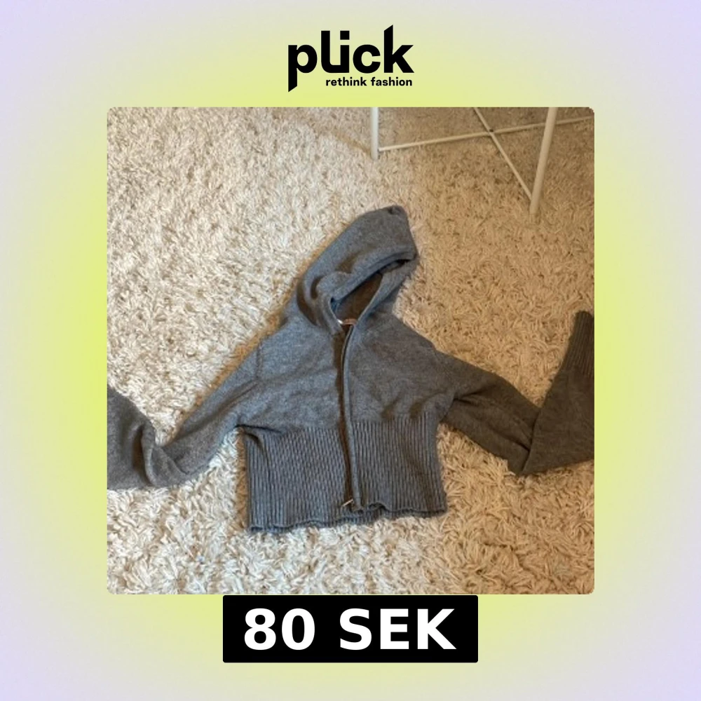 Grå croppad hoodie från Gina Tricot med dragkedja framtill och bred ribbad nederkant. Tröjan är stickad, har långa ärmar och en skön huva. Perfekt för dig som gillar en chill och trendig stil.