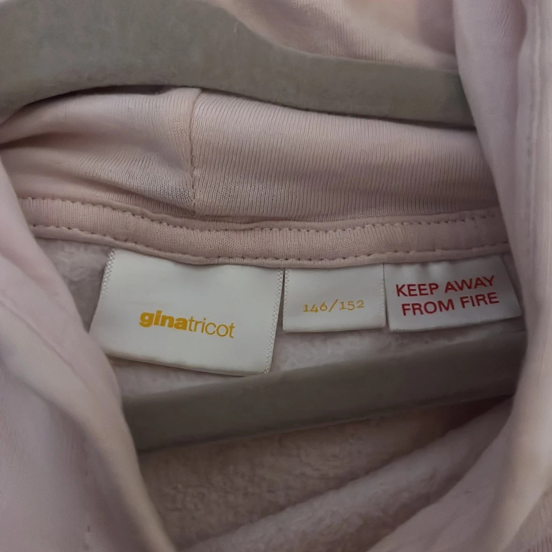 Säljer en ljusrosa hoodie från Gina Tricot i storlek 146/152. Tröjan har en klassisk huva, magficka och ribbade muddar vid ärmslut och nederkant. Perfekt för chill dagar och enkel att matcha med jeans eller leggings.
