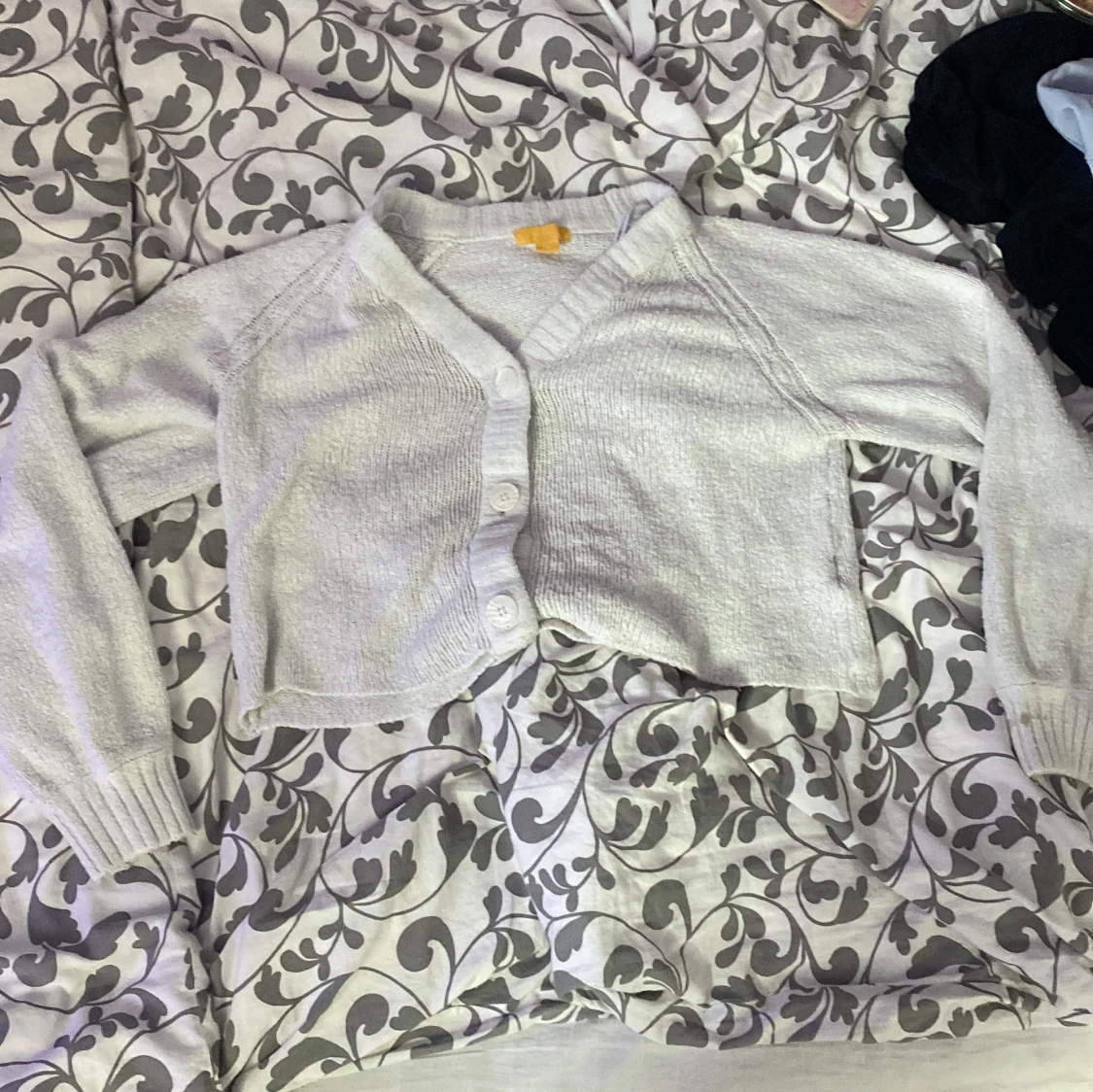 Säljer en vit croppad kofta från Gina Tricot. Koftan har långa ärmar, v-ringning och knäpps med tre vita knappar framtill. Perfekt att slänga över en topp för en enkel och stilren look.