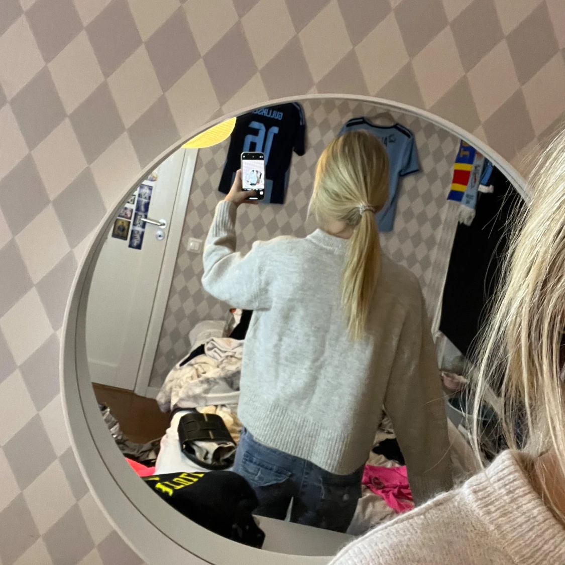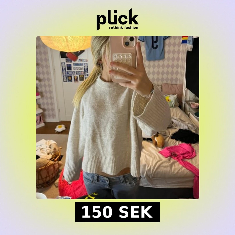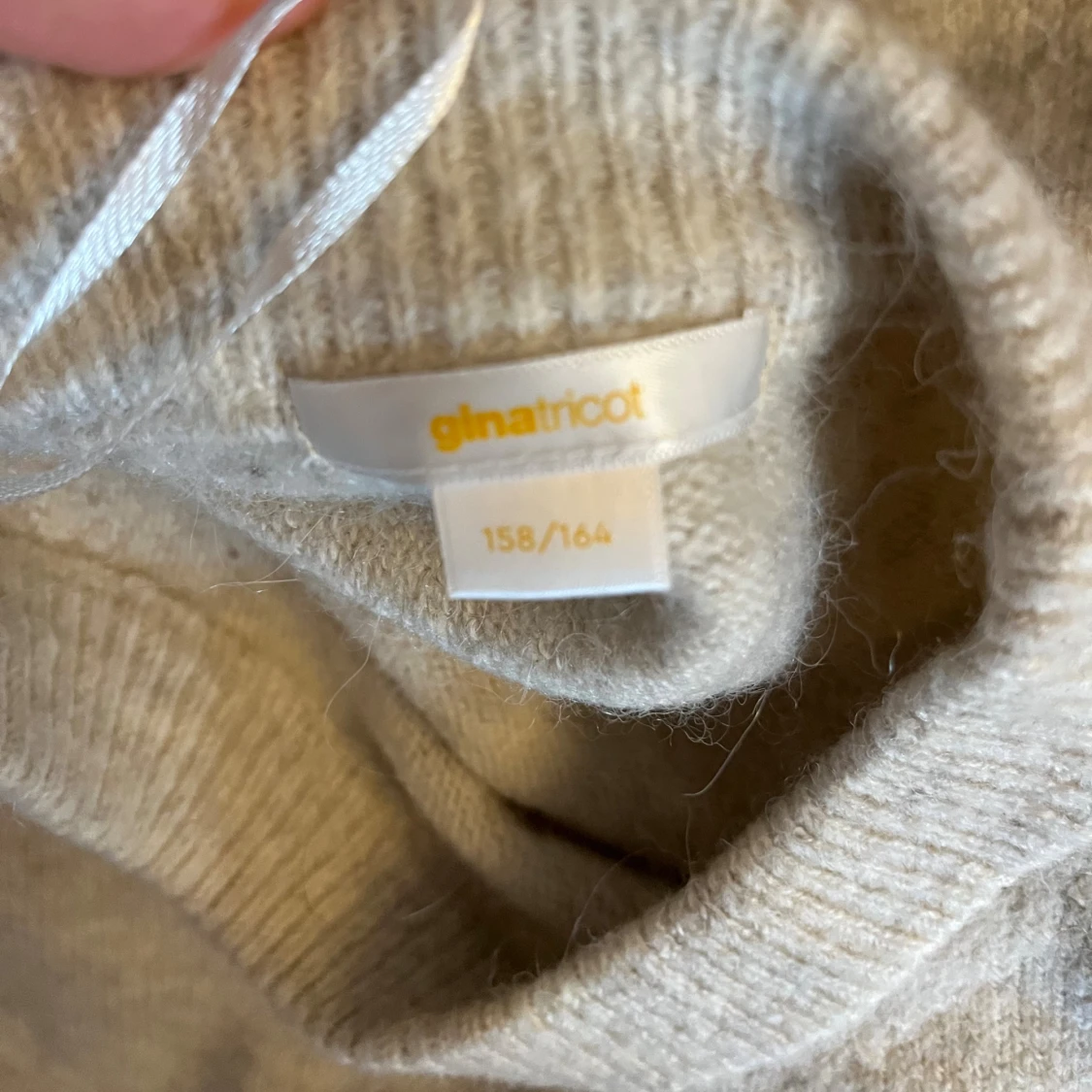 Mysig beige stickad tröja från Gina Tricot med rund halsringning och breda ribbade muddar vid ärmslut och nederkant. Tröjan har en loose passform och är perfekt för lager-på-lager-stil under kyliga dagar.