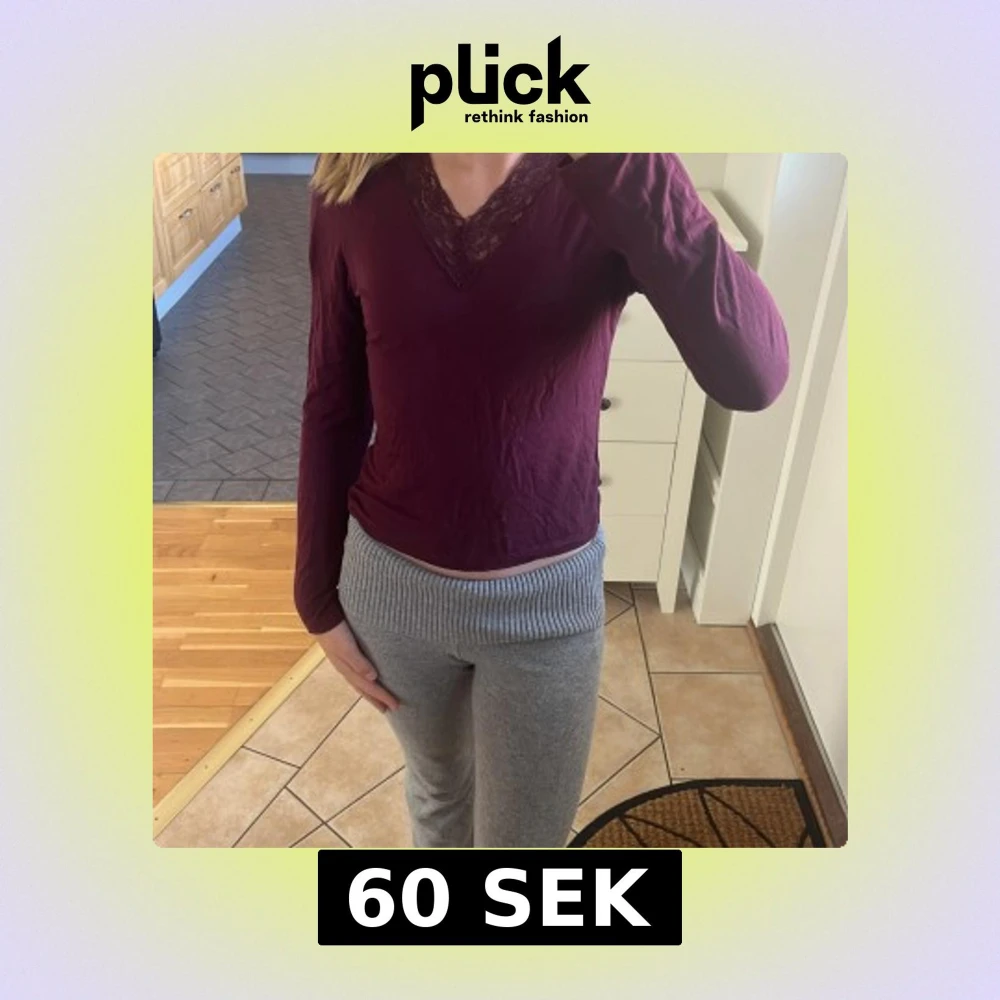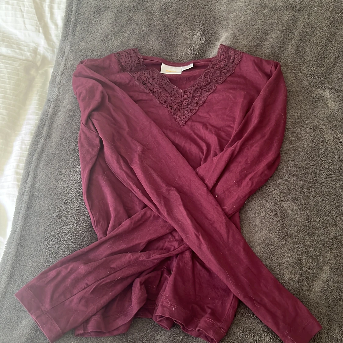 Vinröd långärmad topp med spets Gina Tricot
