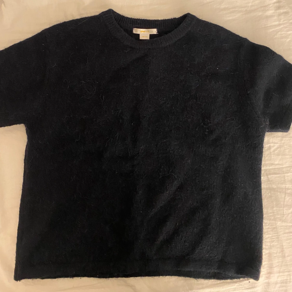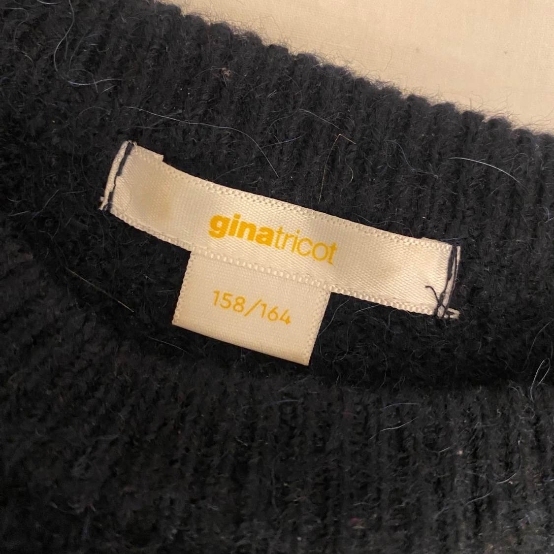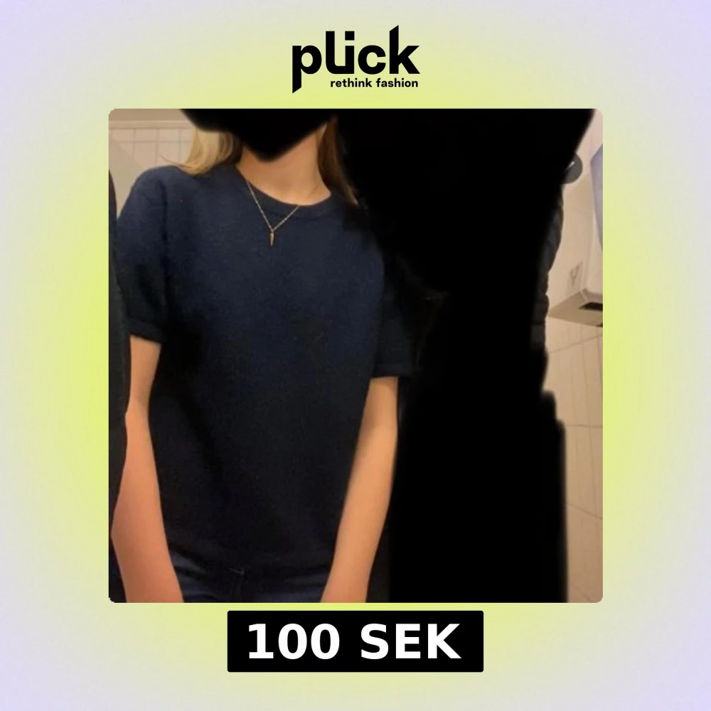 Mörkblå stickad tröja från Gina Tricot med korta ärmar och rund halsringning. Den har blivit använd inte ens 5 gånger då jag inte gillar lösa kläder 🤍