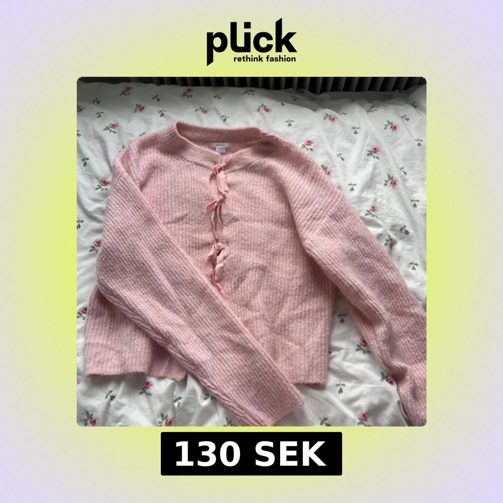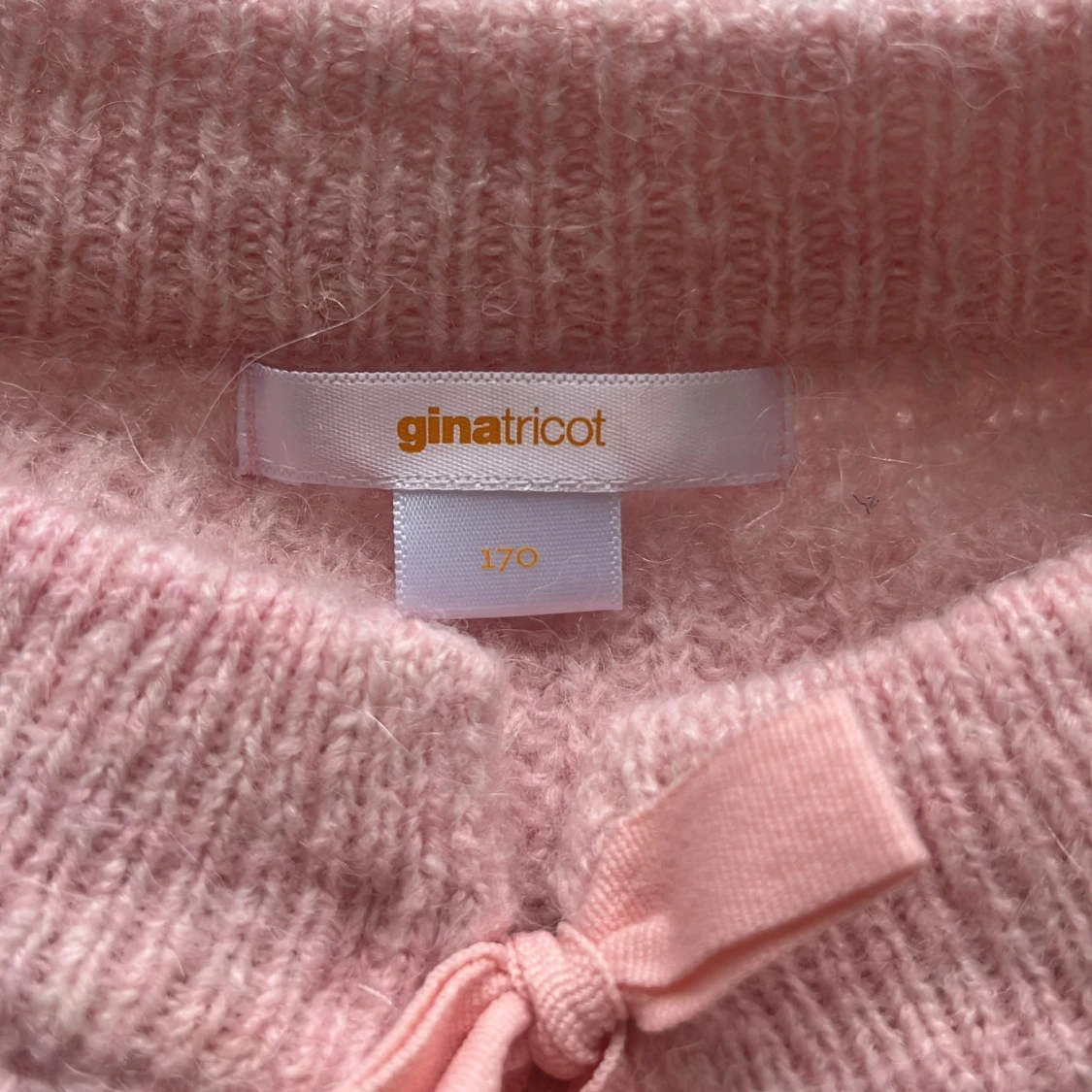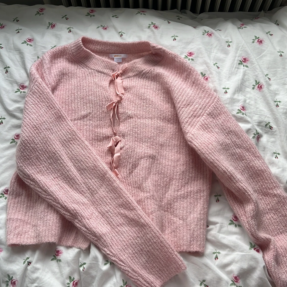 Superfin ljusrosa stickad kofta från Gina Tricot med långärmad modell och söta rosetter framtill. Har aldrig används!