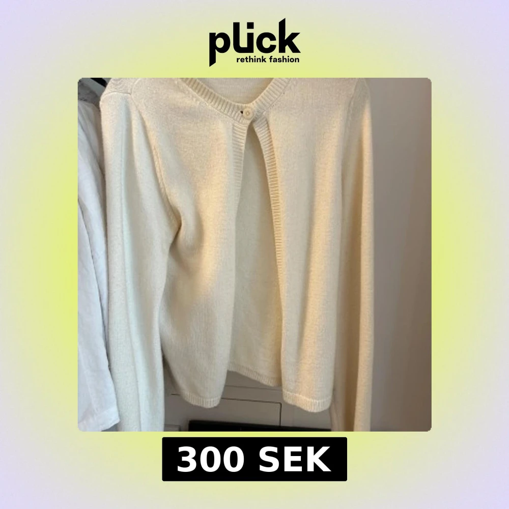 Säljer en enkel och stilren vit stickad kofta från Gina Tricot. Koftan har lång ärm, rund halsringning och knäppning med en knapp upptill. Perfekt att slänga över en topp för en clean look.😊🩷