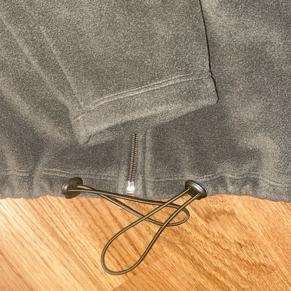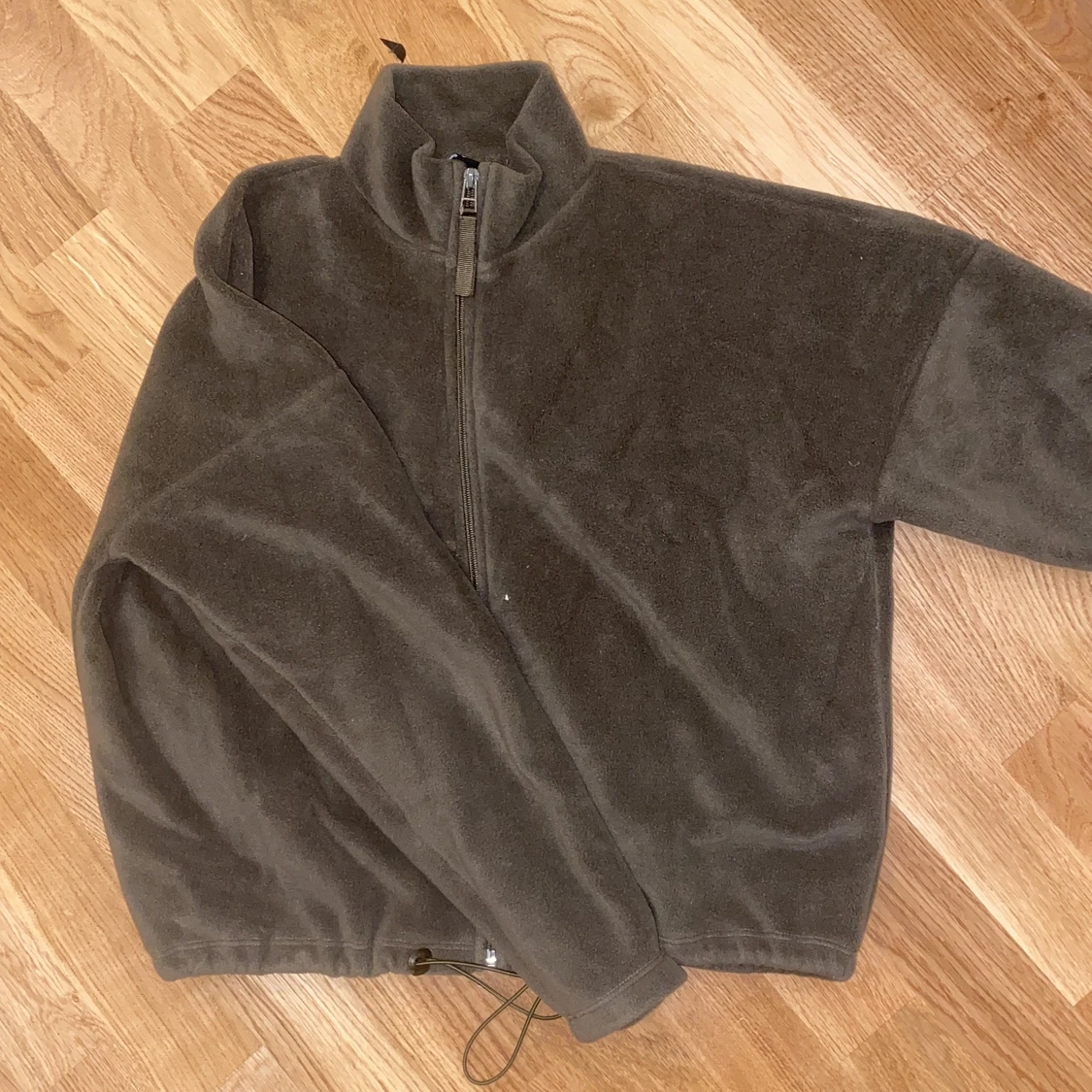 Mysig fleecetröja med dragkedja och dragsko vid midjan. Samma material på insidan. Storlek XS. Mörkgrön.