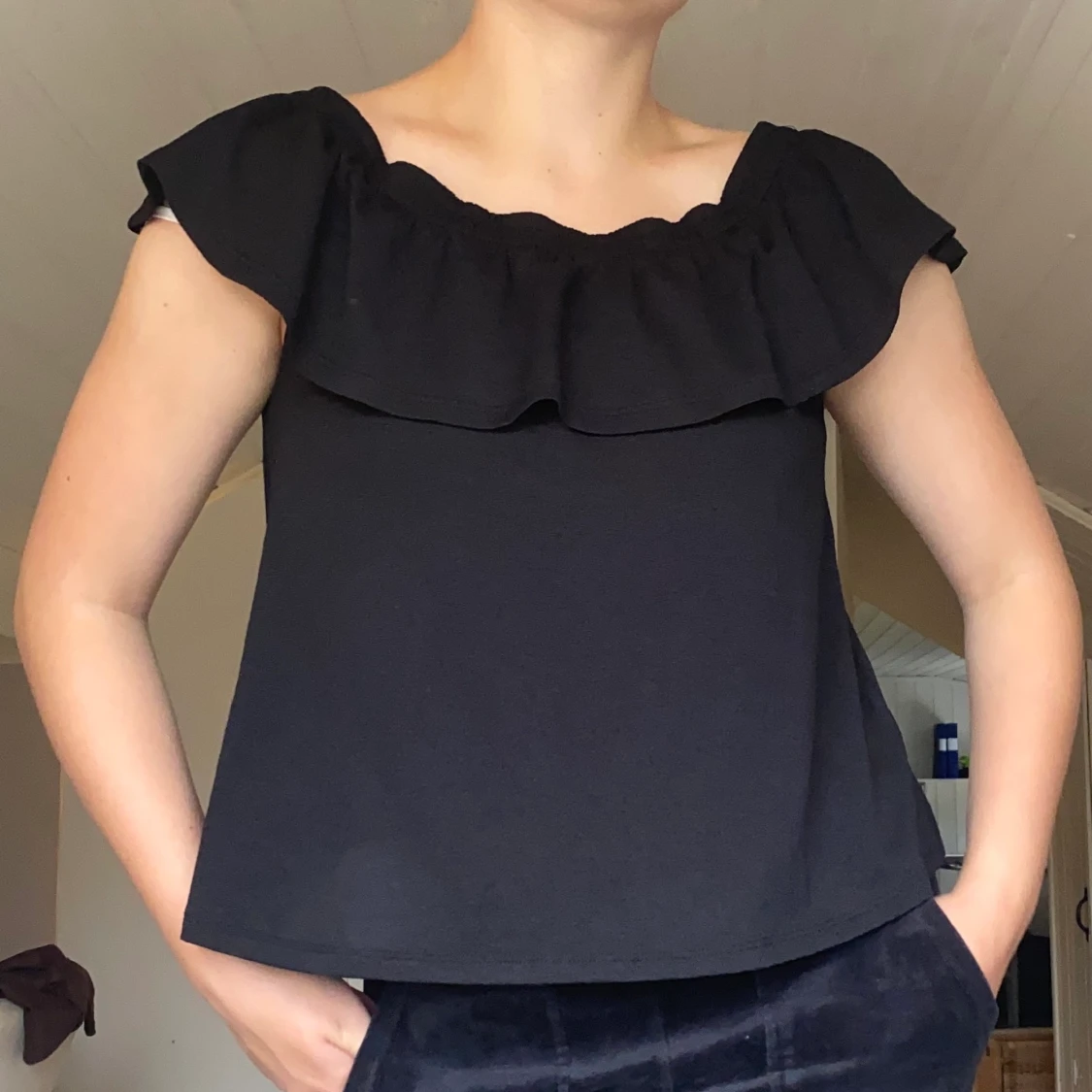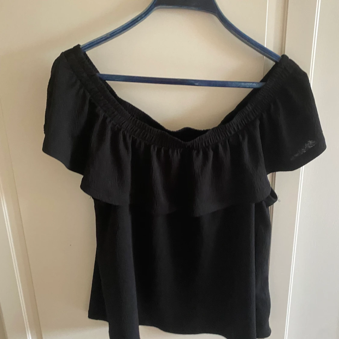 Svart off shoulder tröja från Gina Tricot i storlek L men passar mig som har storlek S-M. Kontakta mig vid köp💕