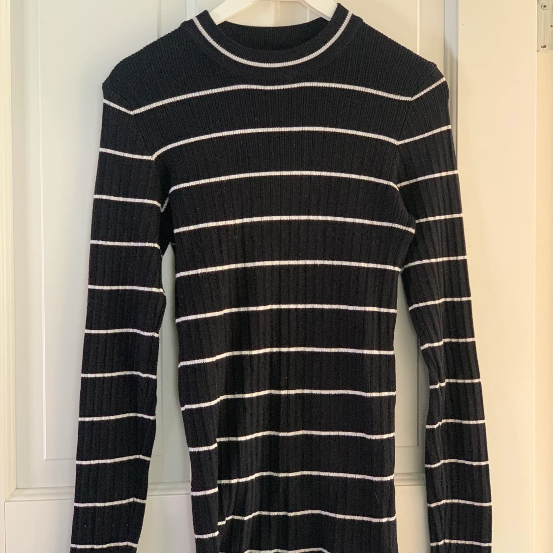 Randig långärmad tröja med hög krage i storlek M från GinaTricot. Väldigt bekväm och stretchig. Tätt sydd vilket gör att den håller ute kyla bra.