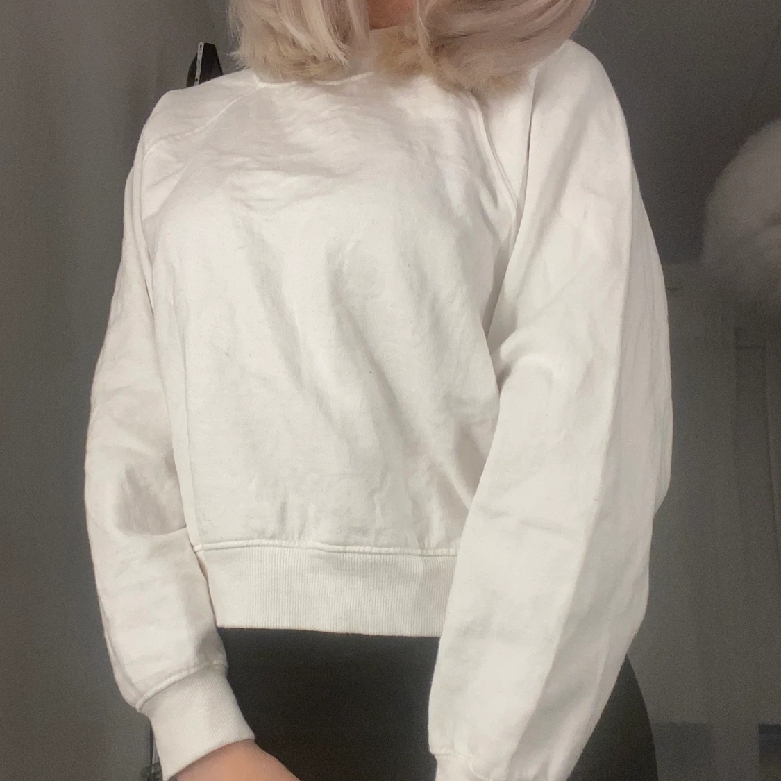 En vit sweatshirt, använd fåtal gånger och den är lite högre vid halsen🤍