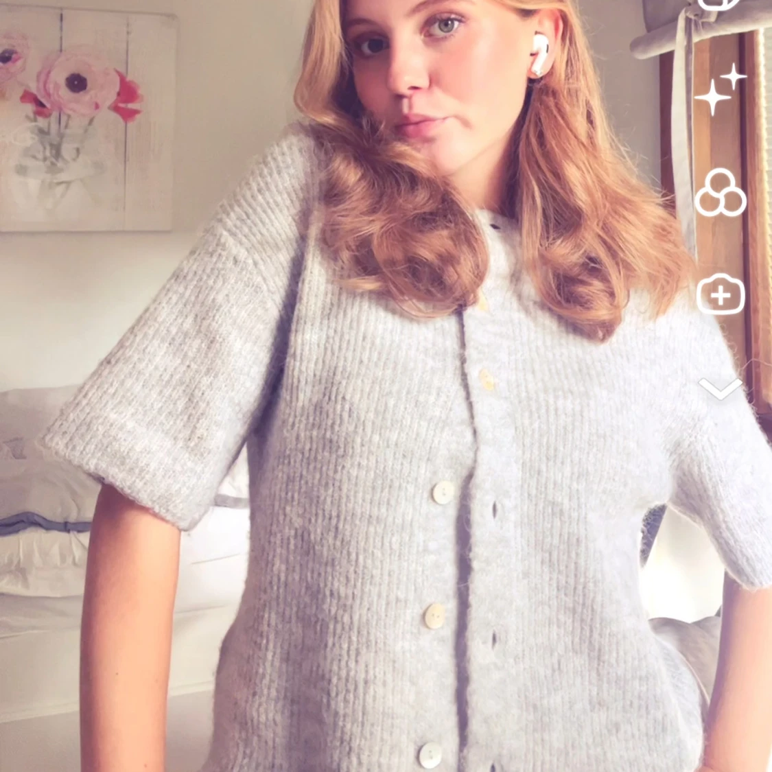 Superskön grå stickad kofta med korta ärmar från Gina Tricot. Perfekt nu till höst! Slutsåld på hemsidan och i mycket bra skick då den inte är använd så många gånger.