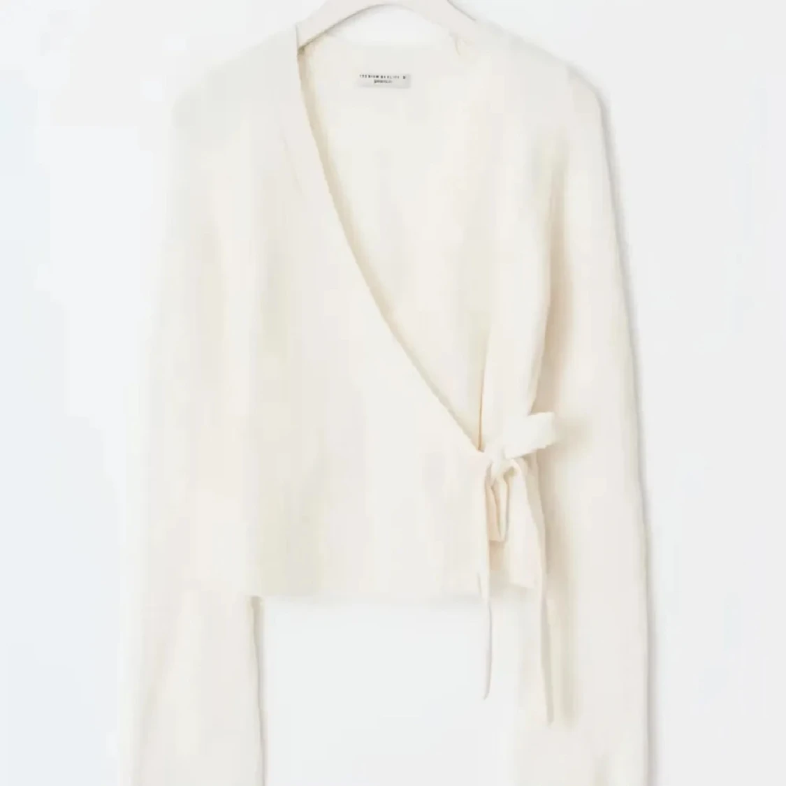Säljer min vita omlottkofta från Gina tricot . Koftan har långa ärmar och en knytning i sidan som ger en snygg passform. Perfekt för lager-på-lager. Absolut inga defekter ❤️