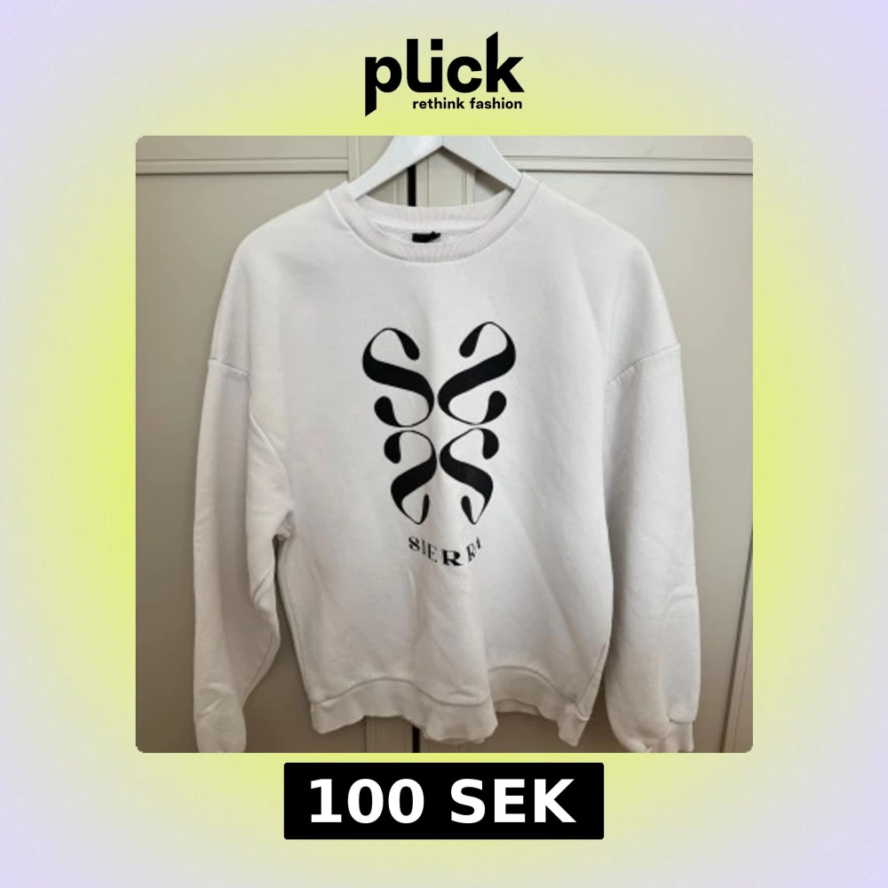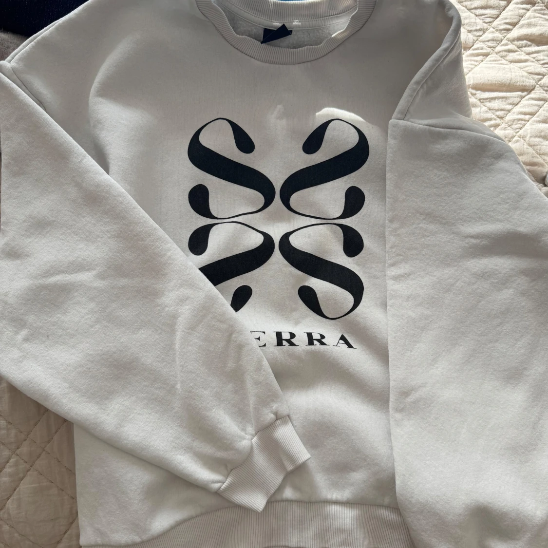 SĂ€ljer en vit sweatshirt frĂ„n Gina med ett svart grafiskt tryck pĂ„ framsidan. Hör av dig vid intresse! đ€