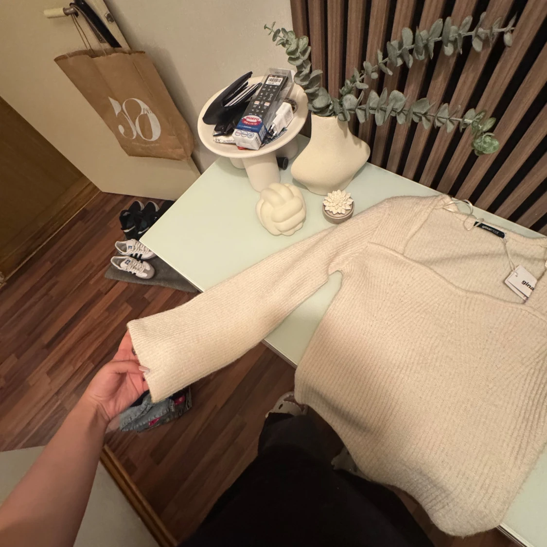 Vit stickad tröja Gina Tricot L