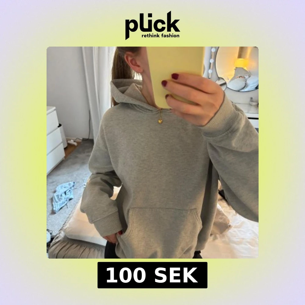 Säljer en stilren grå hoodie med känguruficka framtill. Perfekt för en avslappnad look. Den har en klassisk passform och är tillverkad i mjukt material för extra komfort.