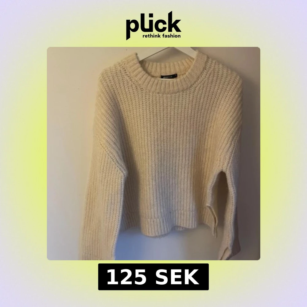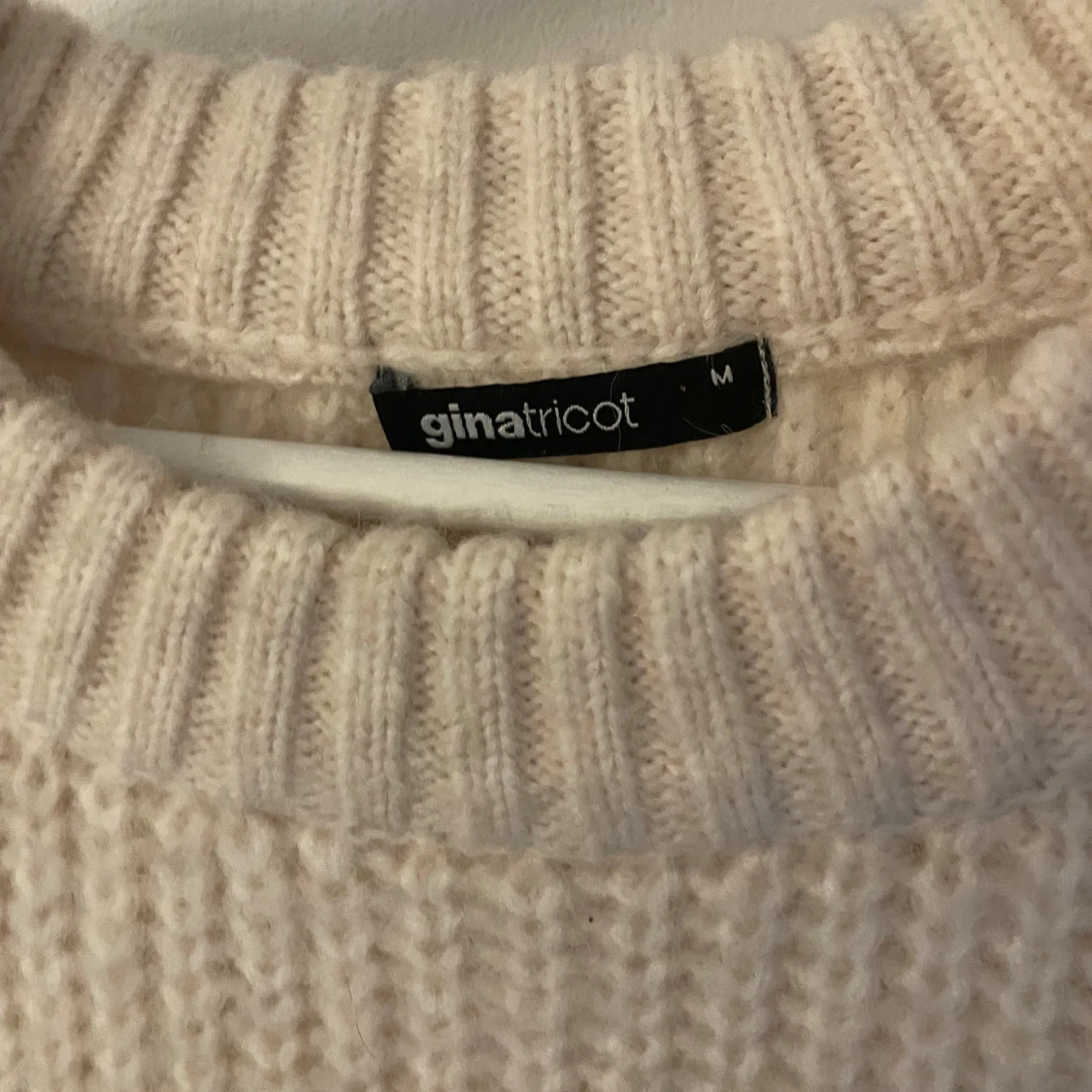Supermysig beige stickad tröja från Gina Tricot med grov ribbstickning och rund hals. Perfekt för lager-på-lager och chill dagar. Långärmad och lite oversized fit som ger en avslappnad vibe.