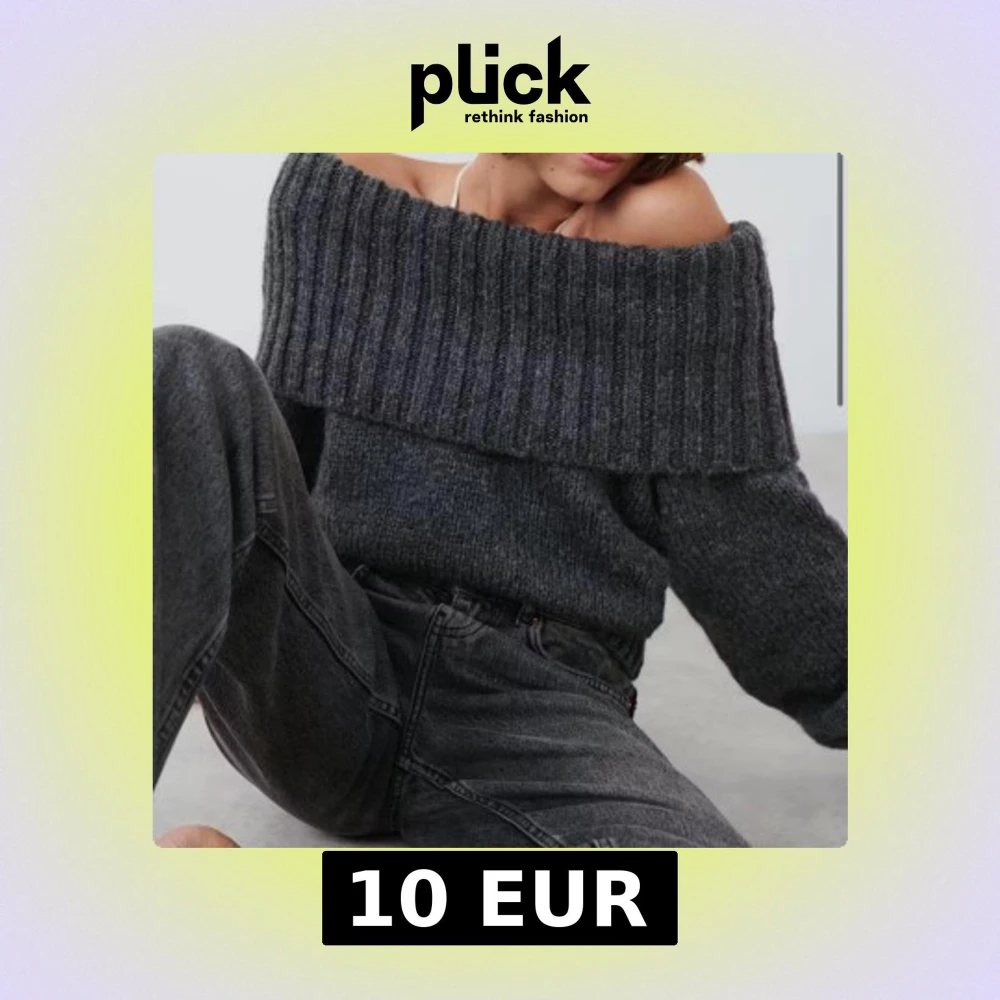 Supermysig grå stickad tröja med bred ribbad offshoulder-krage. Tröjan har lång ärm och en loose fit som ger en chill vibe. Perfekt för lager på lager och att styla med jeans eller kjol. Tjockt garn och ribbade muddar för extra komfort.