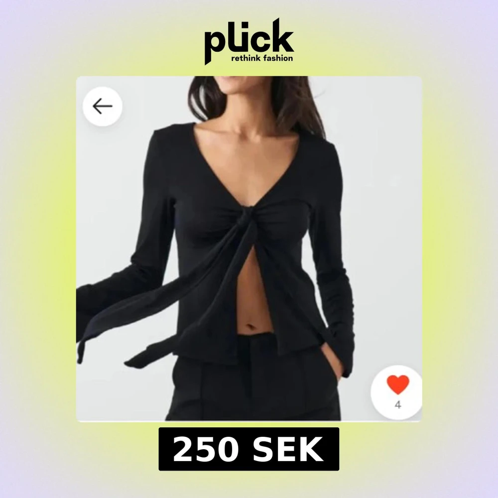 Snygg svart långärmad topp med v-ringning och knyt framtill. Perfekt för en stilren look. Andvänd 1 gång. 💞💞💞