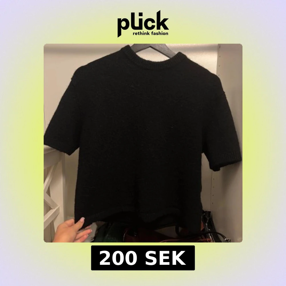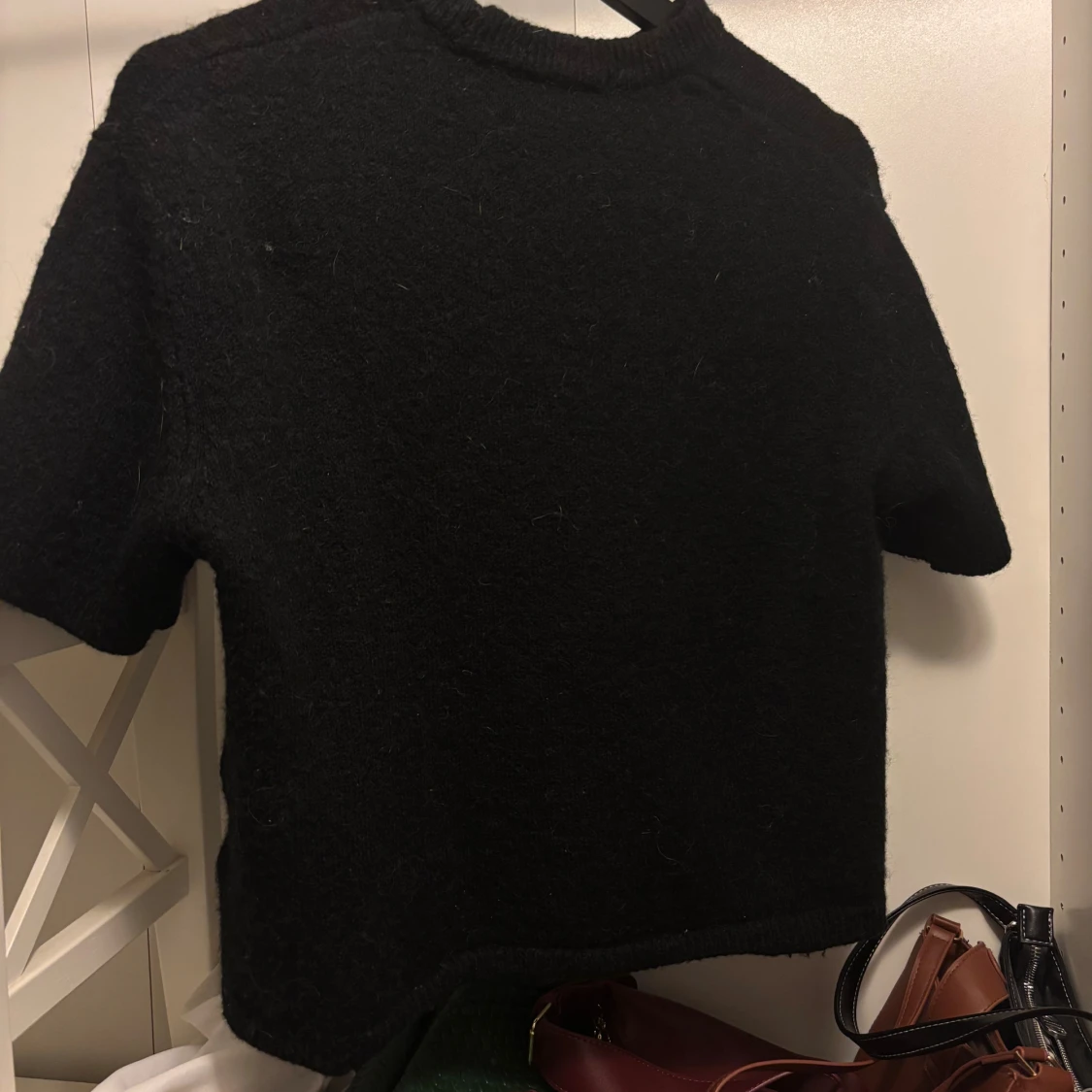 En svart stickad tröja från Gina Tricot med korta ärmar och rund halsringning. Använd fåtal gånger!