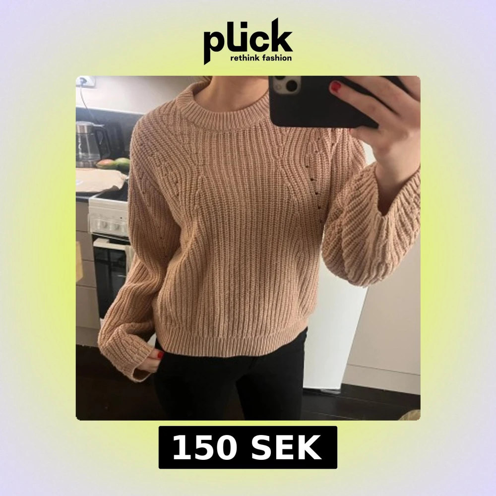 Säljer en beige stickad tröja från Gina Tricot i storlek M. Tröjan har grovstickat mönster, rund halsringning och långa ärmar med snygga detaljer längs axlarna. Perfekt för dig som gillar en chill och cozy stil.