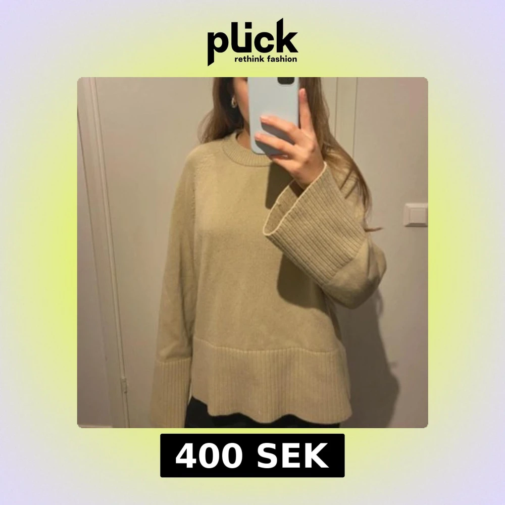 Säljer en söt stickad tröja i en ljusgrön/beige färg, perfekt nu till vintern!!!