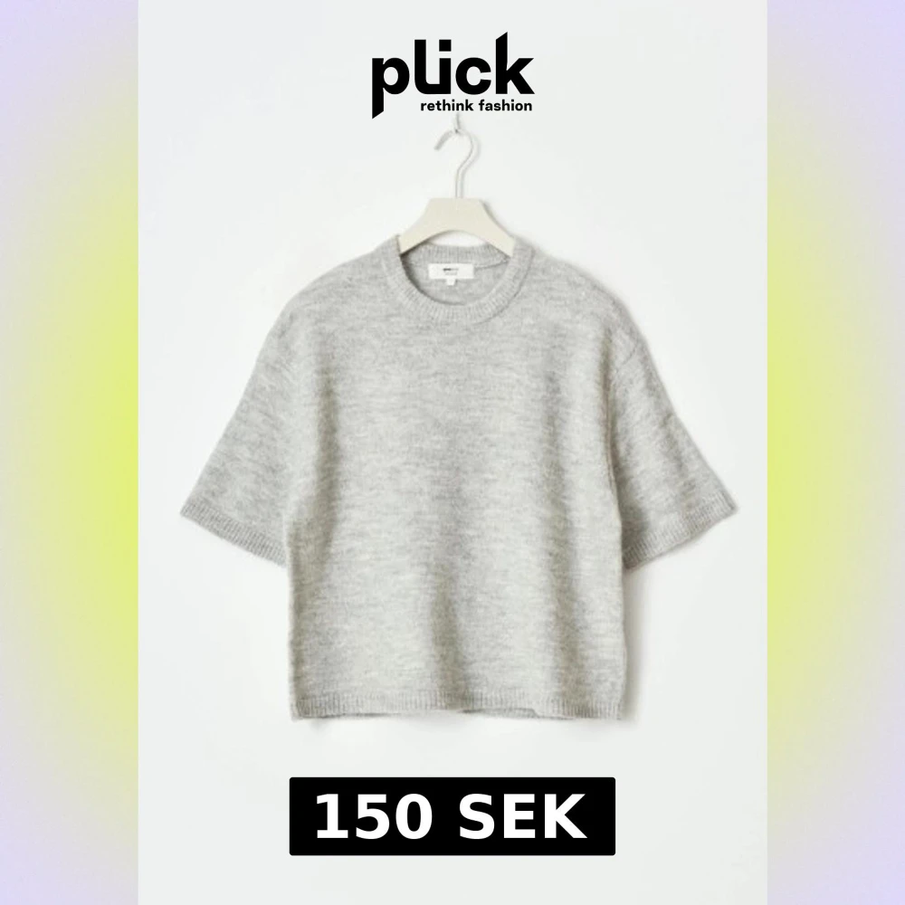 Mysig ljusgrå stickad tröja från Gina med korta ärmar och rund halsringning. Tröjan har en loose passform och ribbade kanter vid ärmslut och nederkant. Perfekt för lager-på-lager under hösten och vintern.