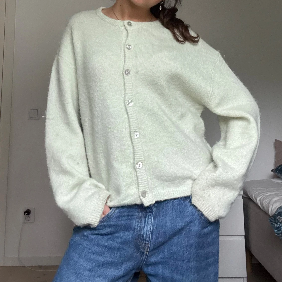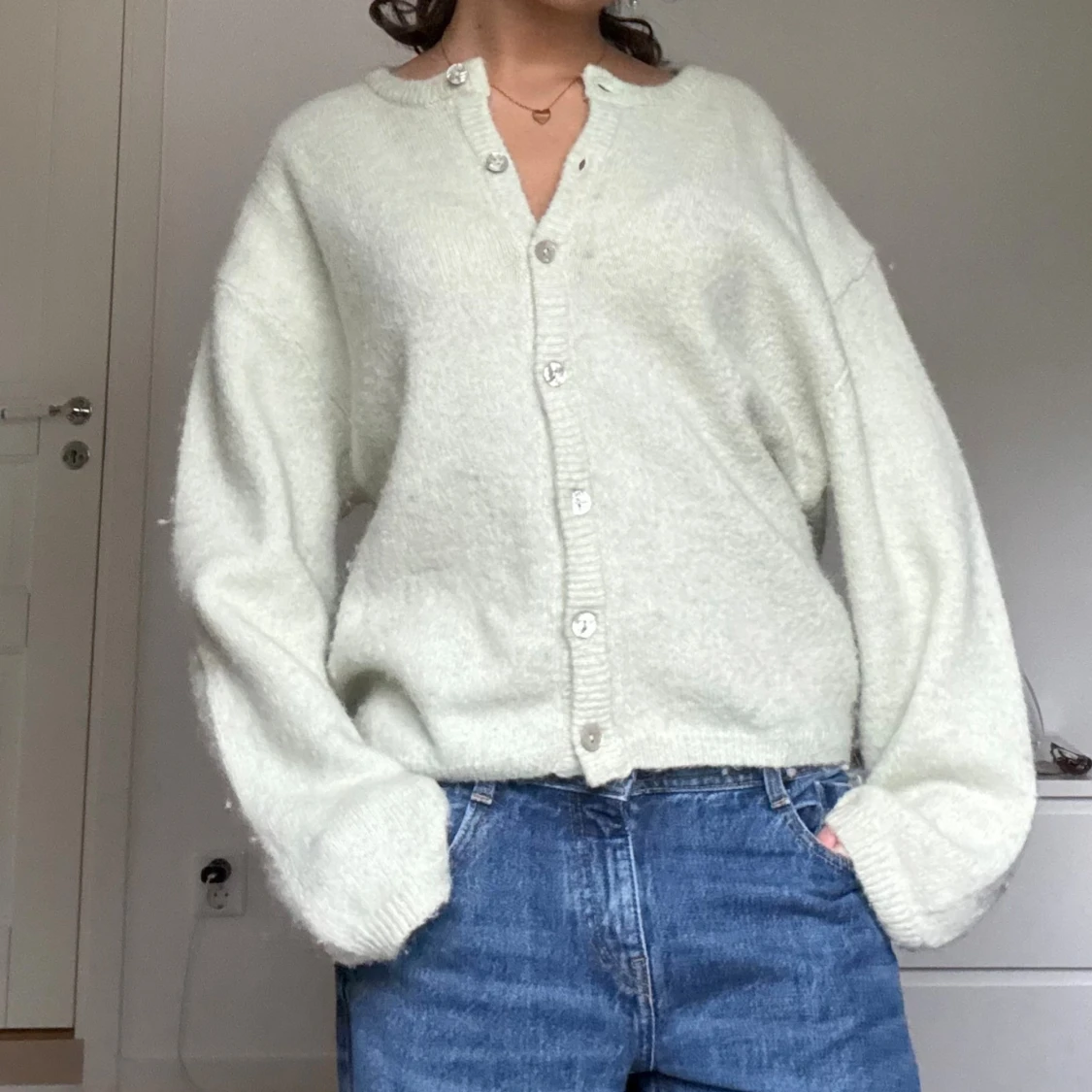 Ljusgrönt / ljus mint stickad kofta med knappar
