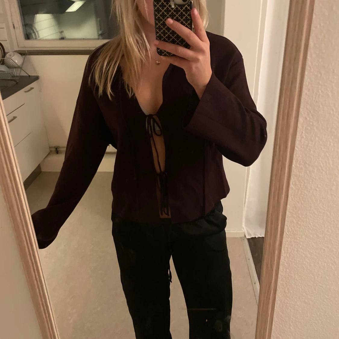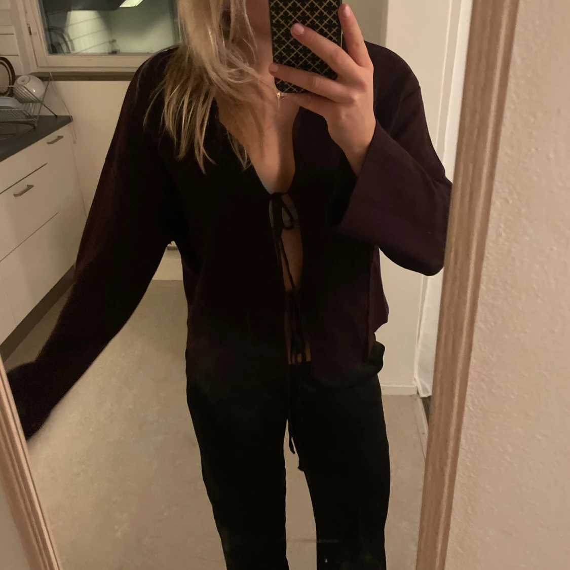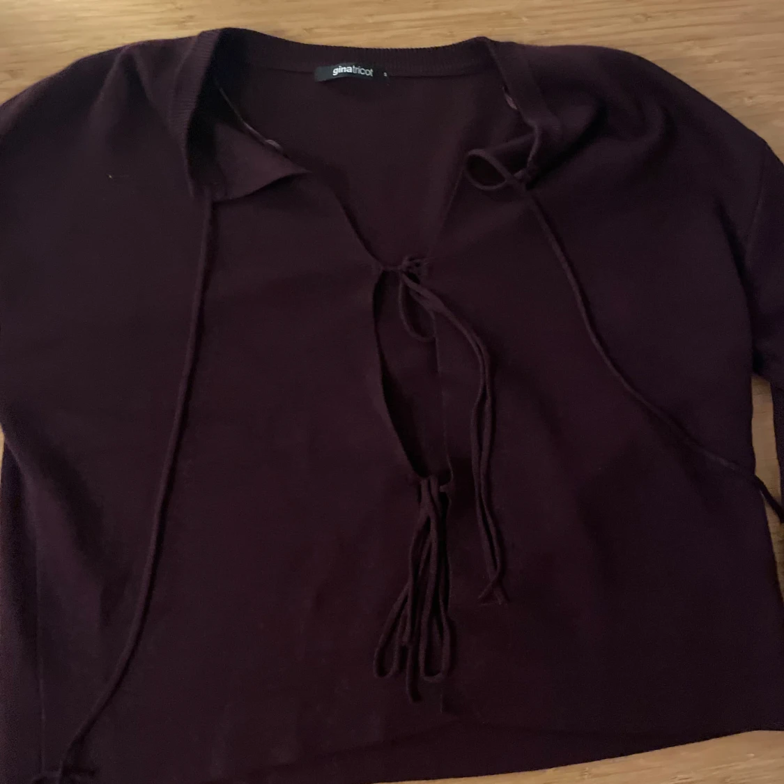 Jättefin vinröd tröja från Gina med knytning i storlek S. Aldrig använd.