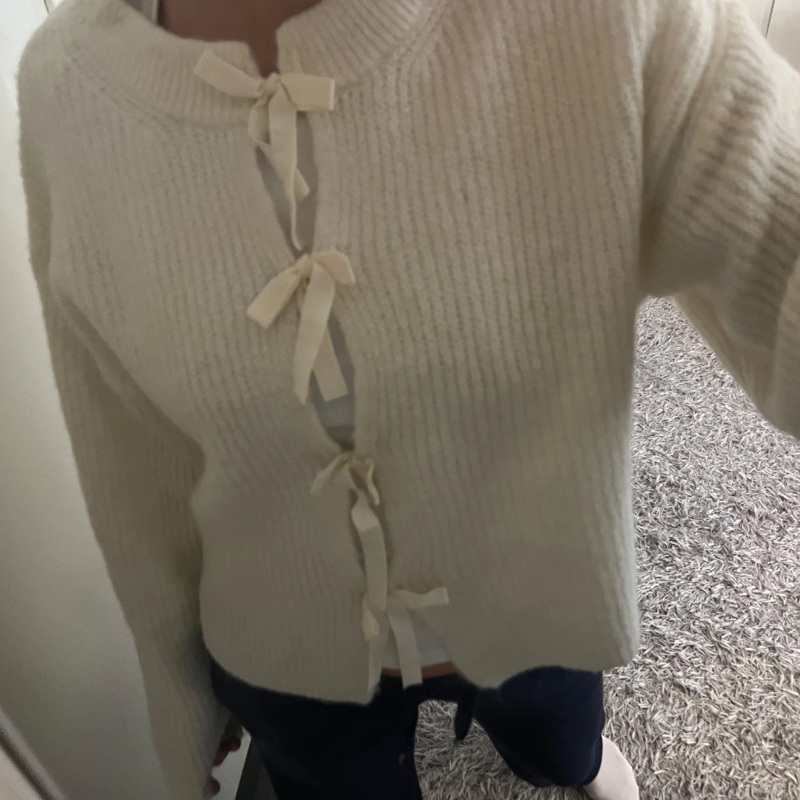 Säljer en jätte fin beige stickad kofta med knytband/rosetter framtill. Från Gina Young i storlek 170💓 sitter bra på mig som bär S💞 nästan helt ny använd få gånger!