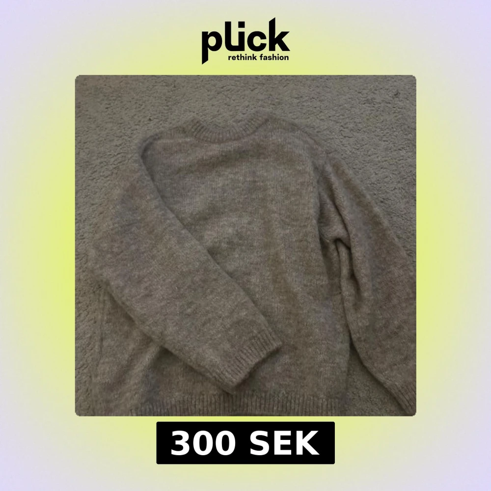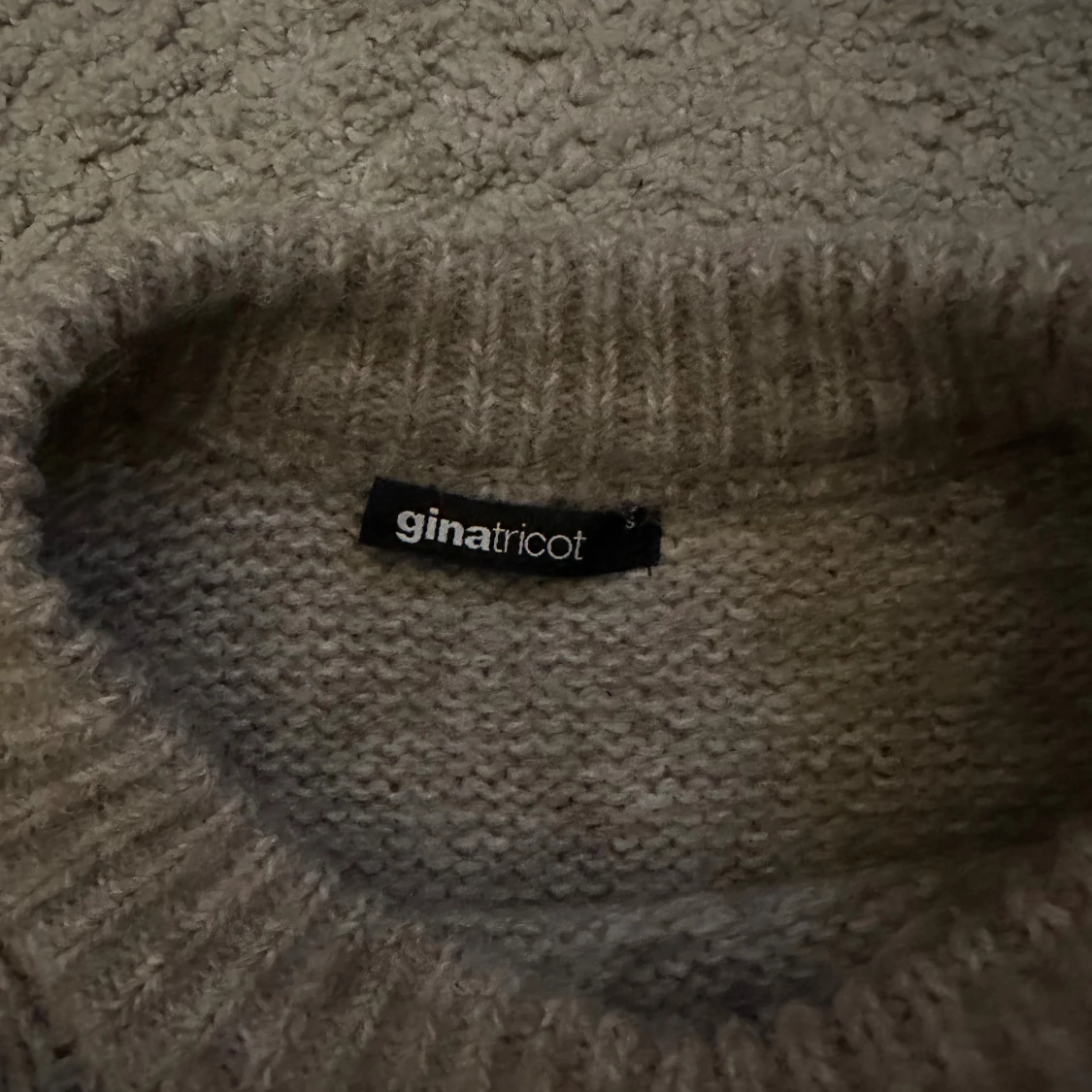 Mysig beige stickad tröja från Gina Tricot med rund halsringning och ribbade muddar vid ärmslut och nederkant. Storlek S.