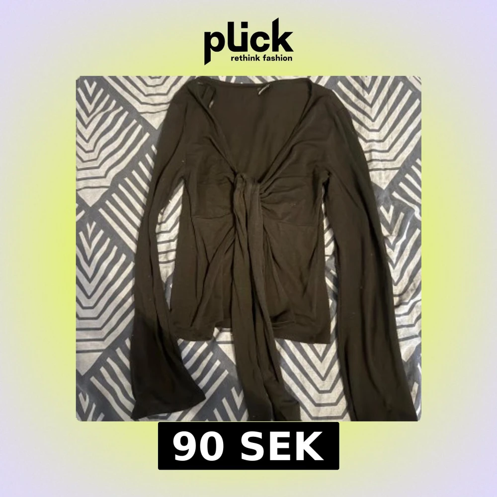 Snygg svart långärmad topp från Gina Tricot med knytning framtill. Perfekt för en stilren look. Passar bra till både jeans och kjol.