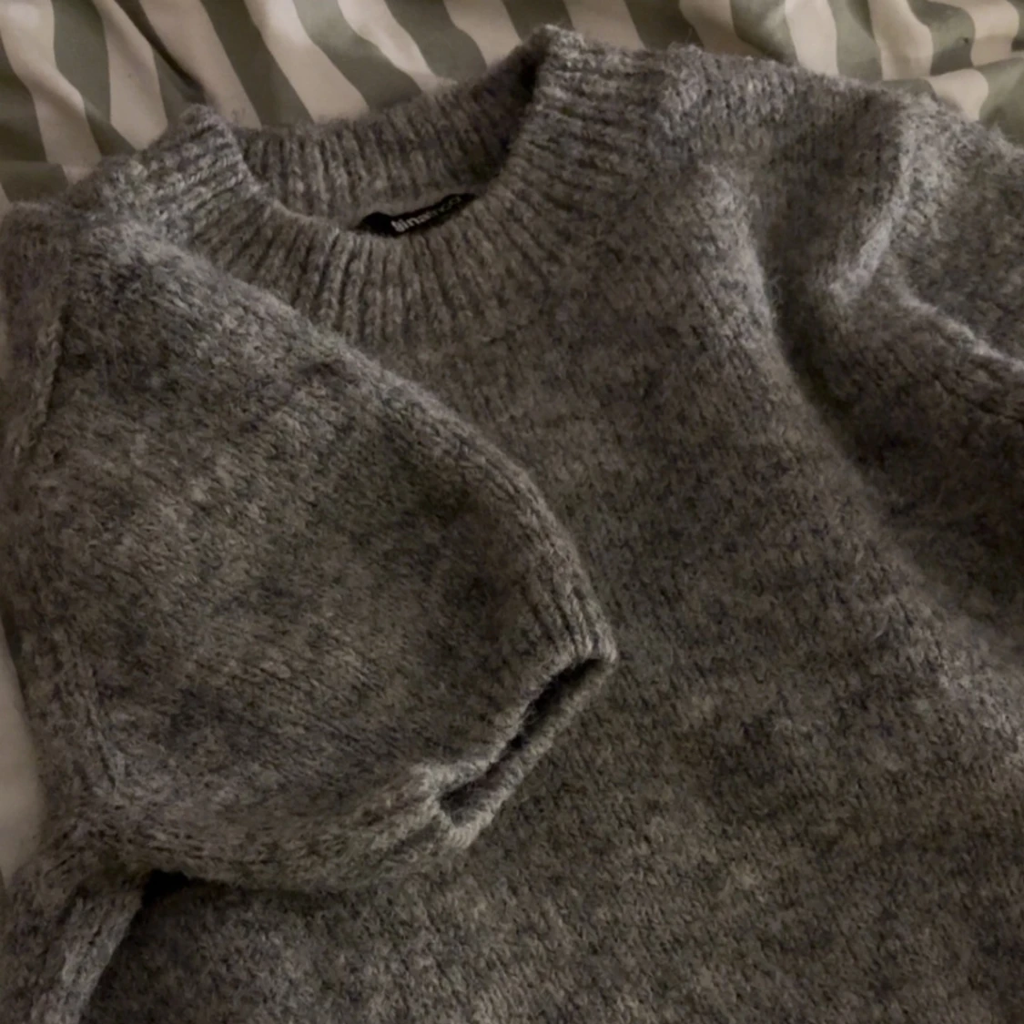 Mysig grå stickad tröja från Gina Tricot med kort ärm, använd fåtal gånger