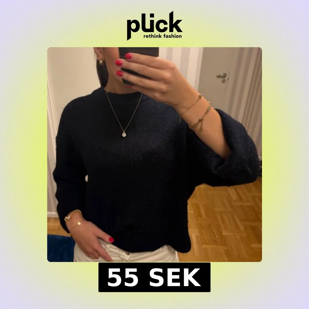 Mysig mörkblå stickad tröja från Gina Tricot i oversized modell. Tröjan har rund halsringning, långa ärmar och ribbade muddar. Snygg till vardagen. Litet hål i armhålan men inget man tänker på!