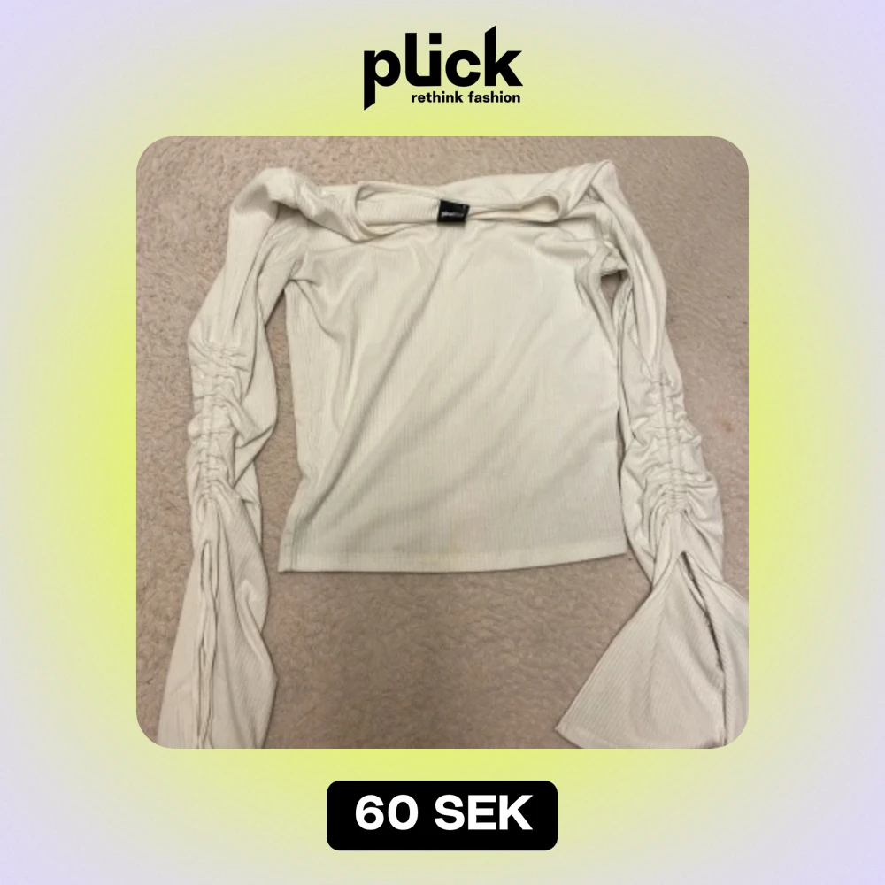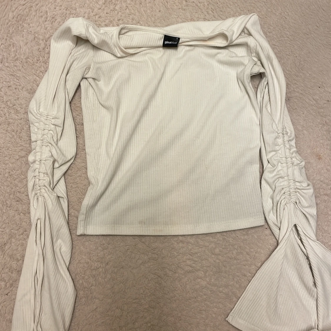 En jätte fin vit tröja från Gina Tricot storlek S. På varje arm finns det en slits som är öppen, som man även kan dra åt och knyta till en rosett. Jätte fin tröja