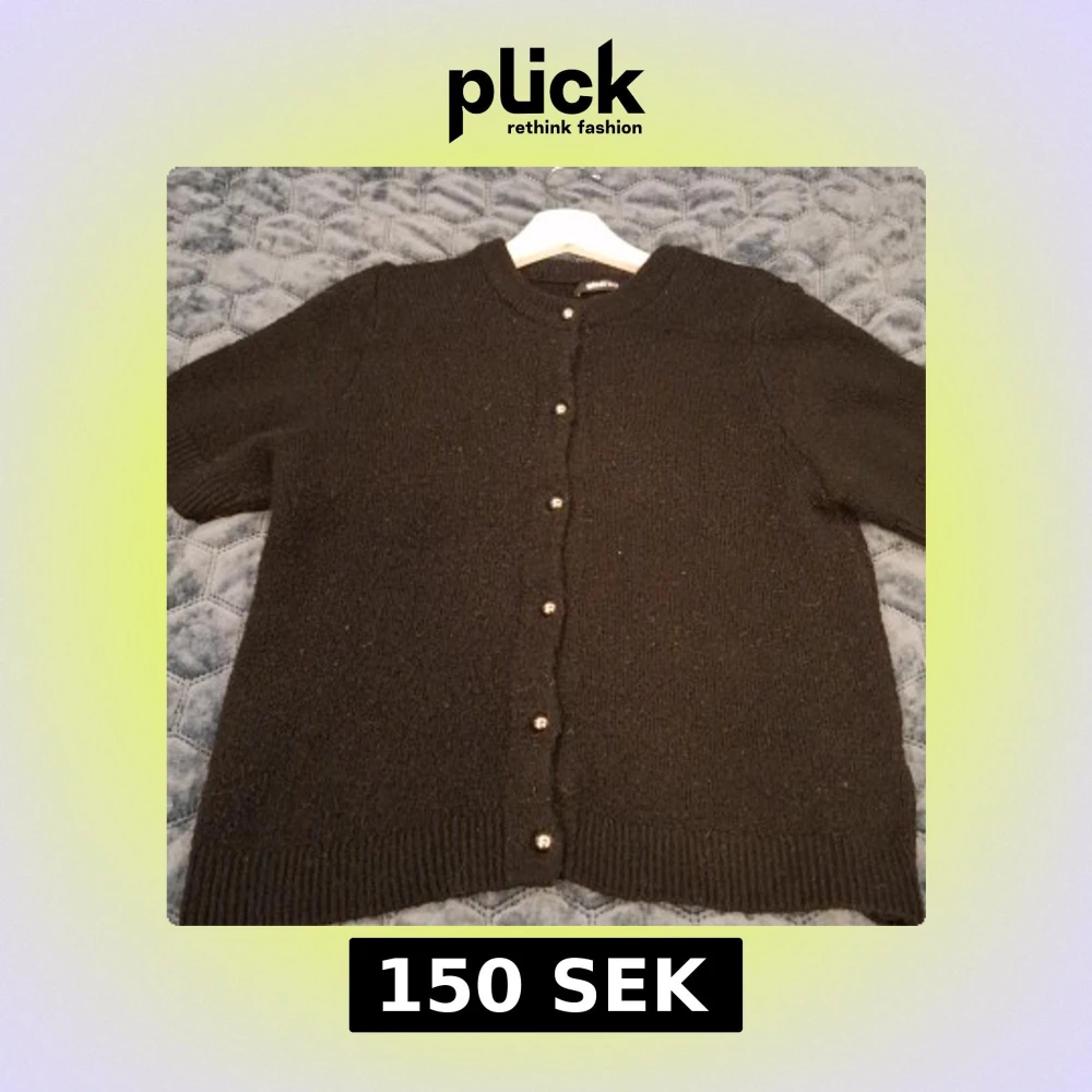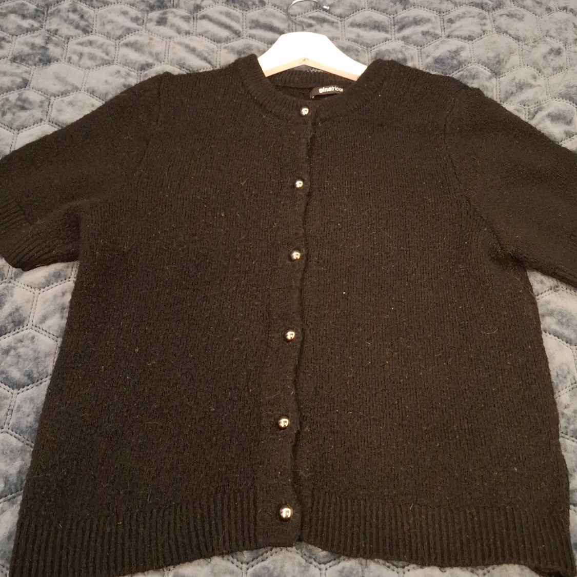Kortärmad svart stickad kofta från Gina Tricot med rund halsringning och snygga knappar framtill. Perfekt att slänga över en topp för en chill look. Ribbstickade muddar vid ärmslut och nederkant.