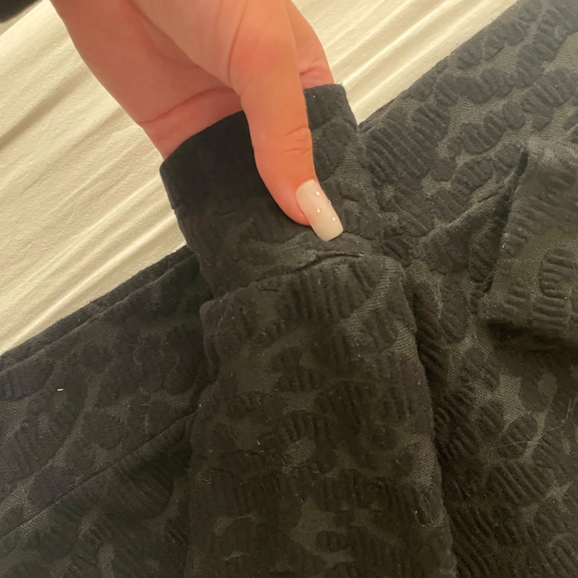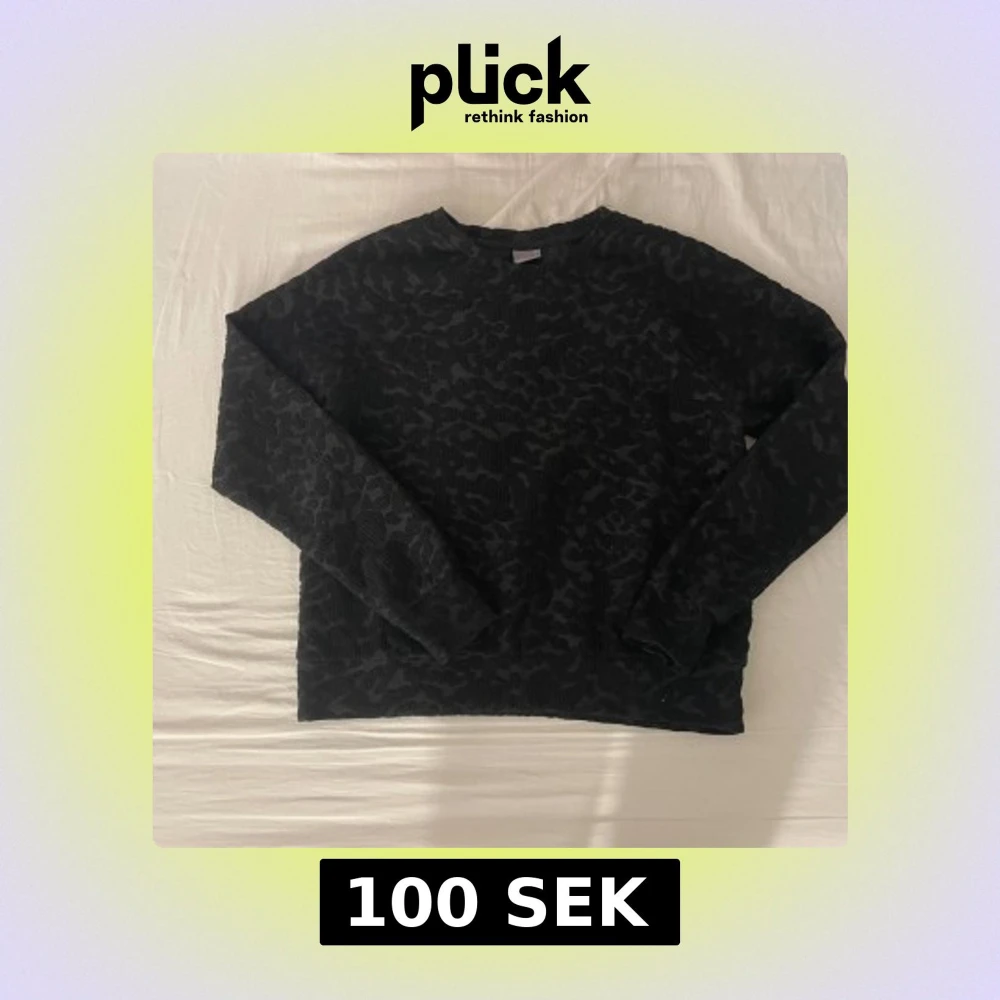 En svart tröja med leopardmönster skitsnyg men är tyvärr för liten för mig köpte den på selpy. Är ett litet håll vid ärmen som du kan se på bild 2. Skicka jämna prisförslag