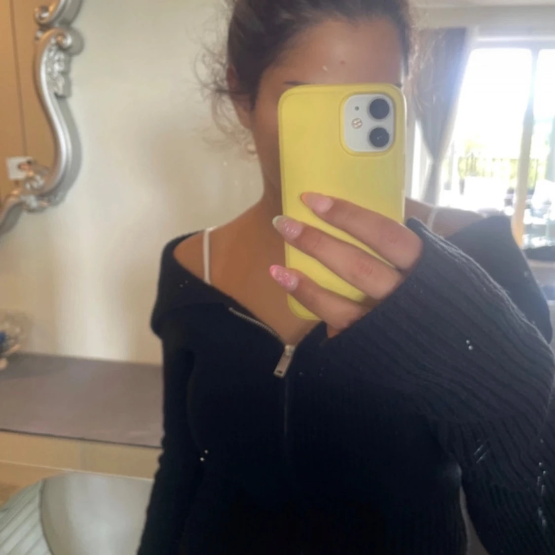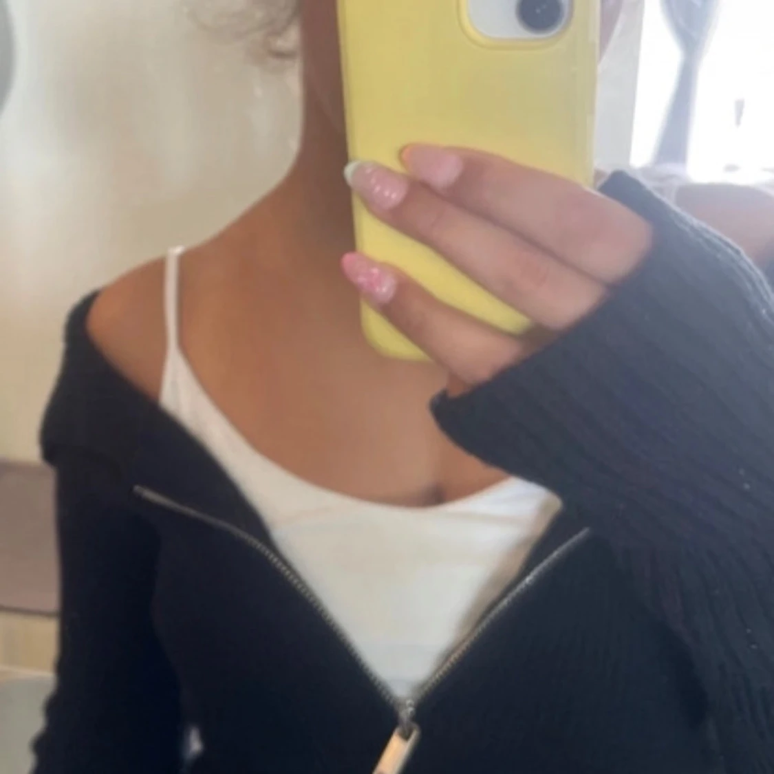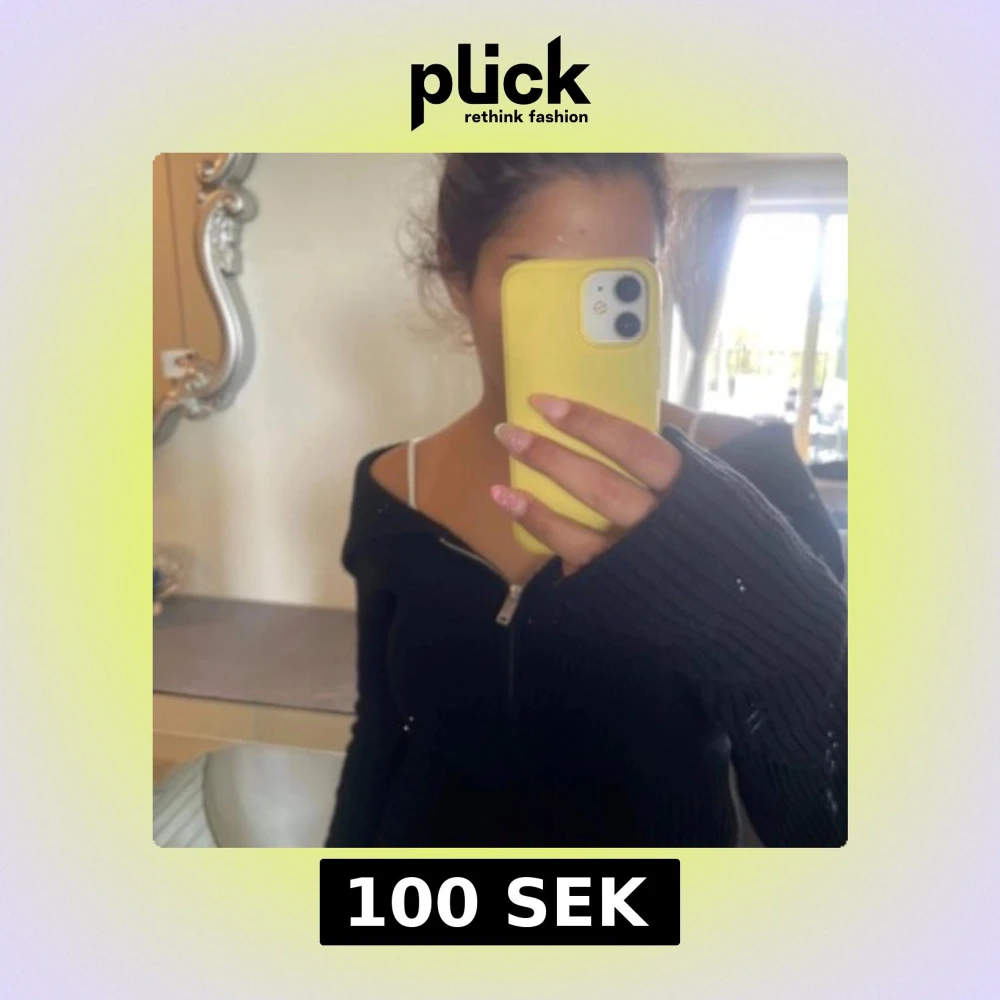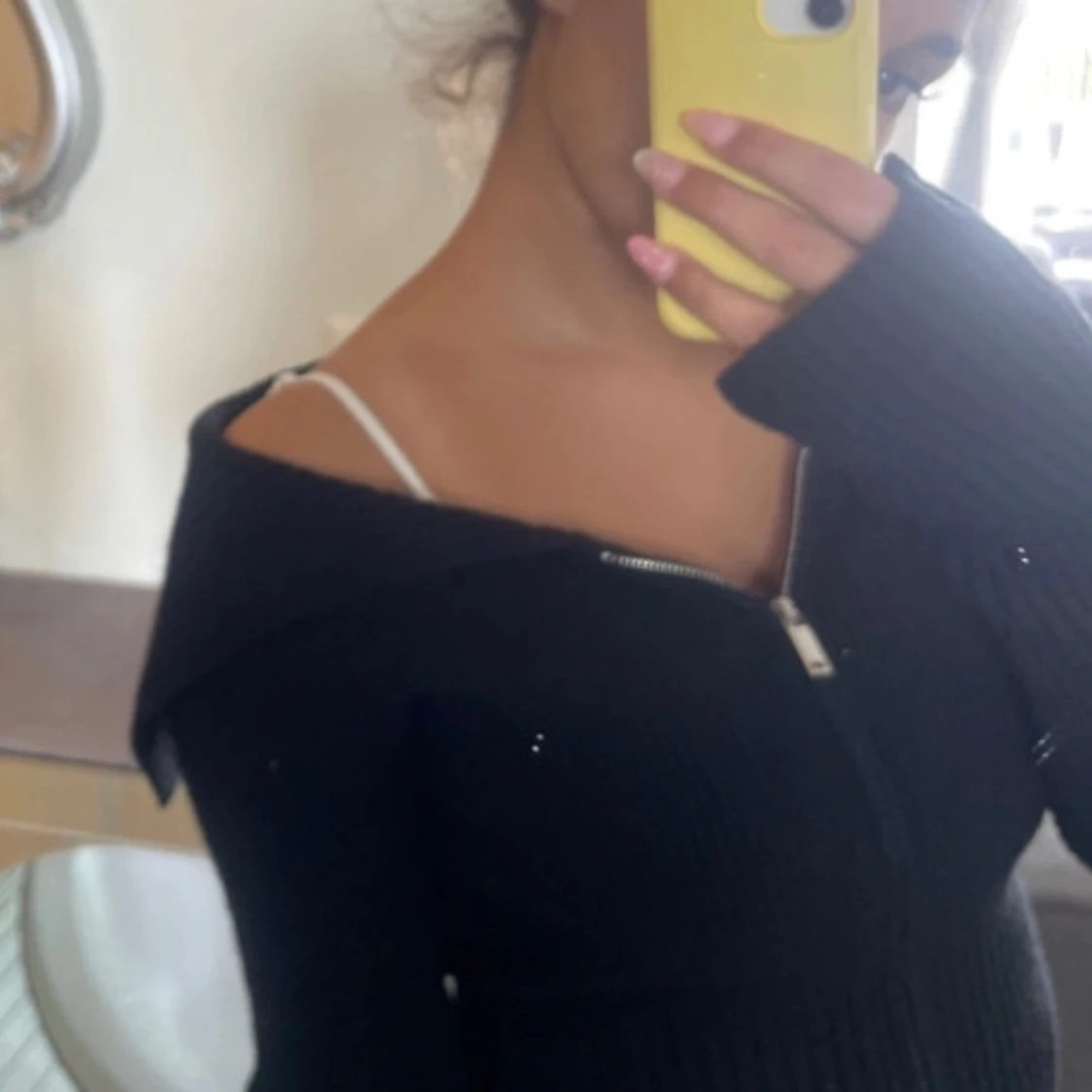 Svart stickad kofta med ribbad struktur och dragkedja framtill. Modellen är långärmad. Använt endast 3 gånger!