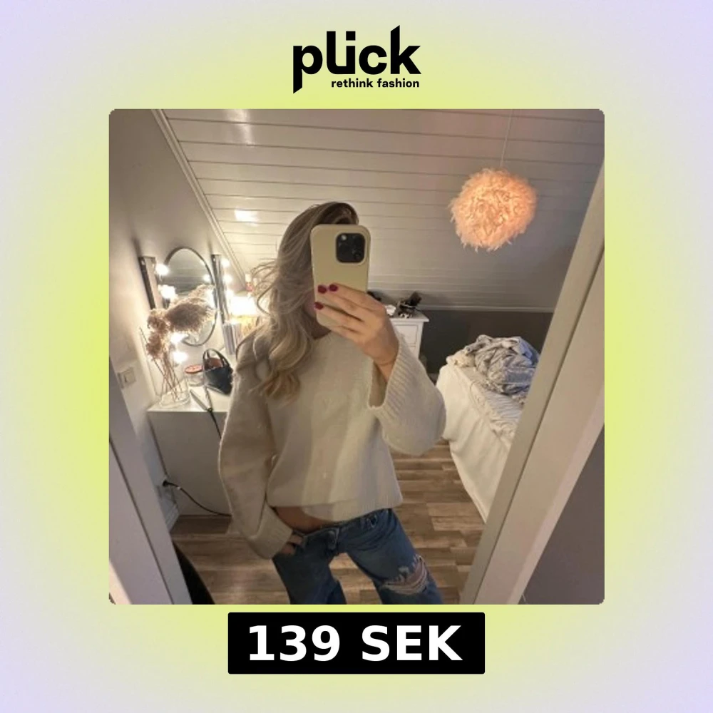 Mysig krämvit stickad tröja med breda, långa ärmar och ribbad halsringning. Tröjan har en loose passform och är perfekt för att hålla sig varm under kyliga dagar. Enkel och stilren design som är lätt att matcha med jeans eller andra favoritplagg. Den har blivit ganska nopprig